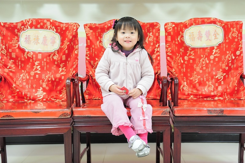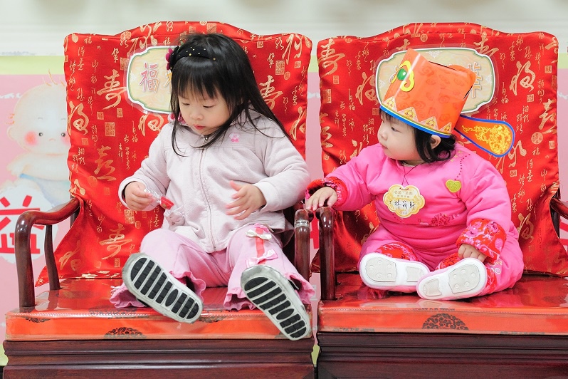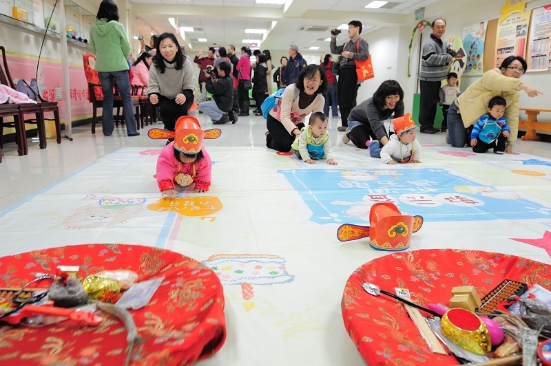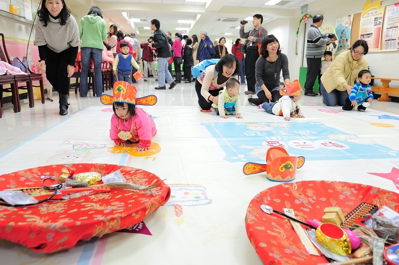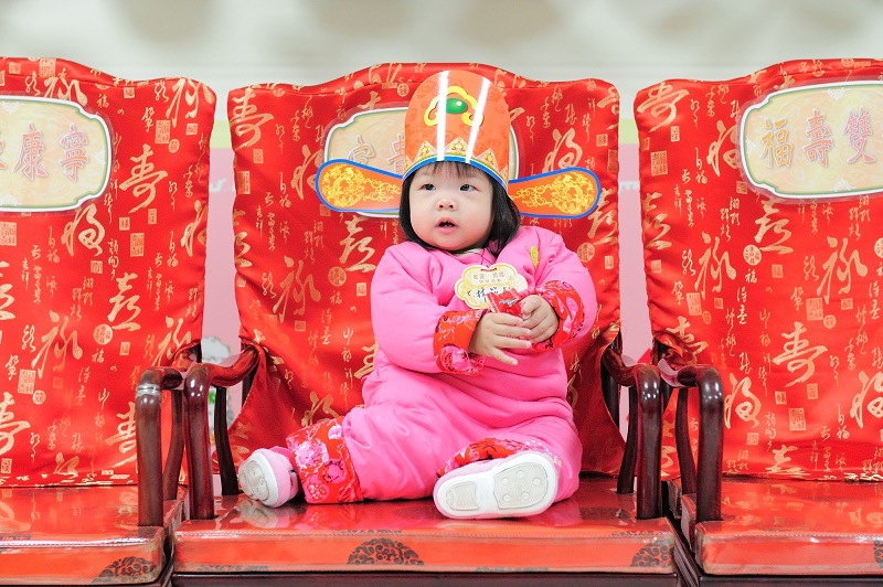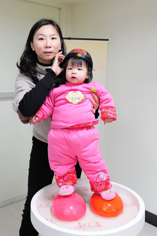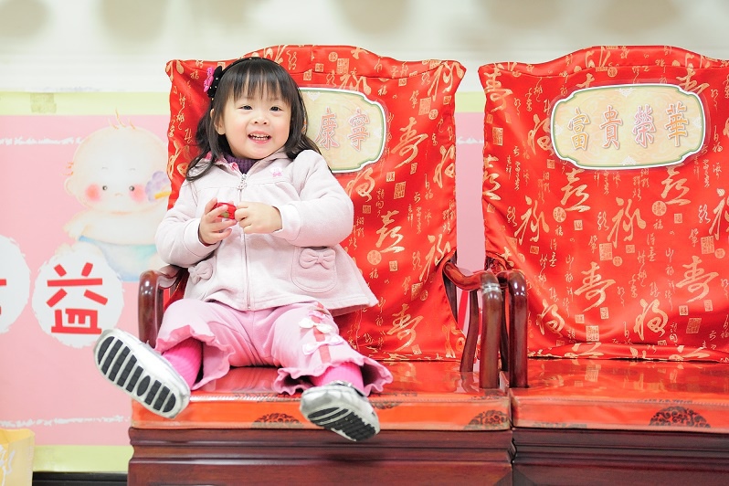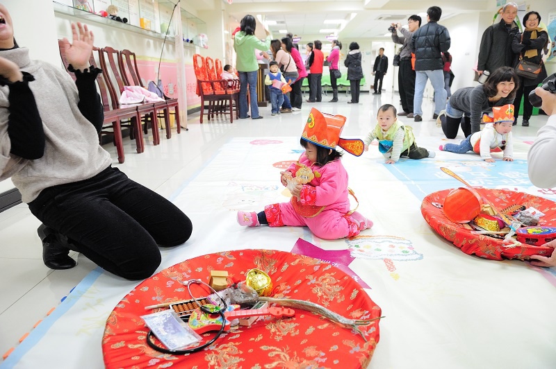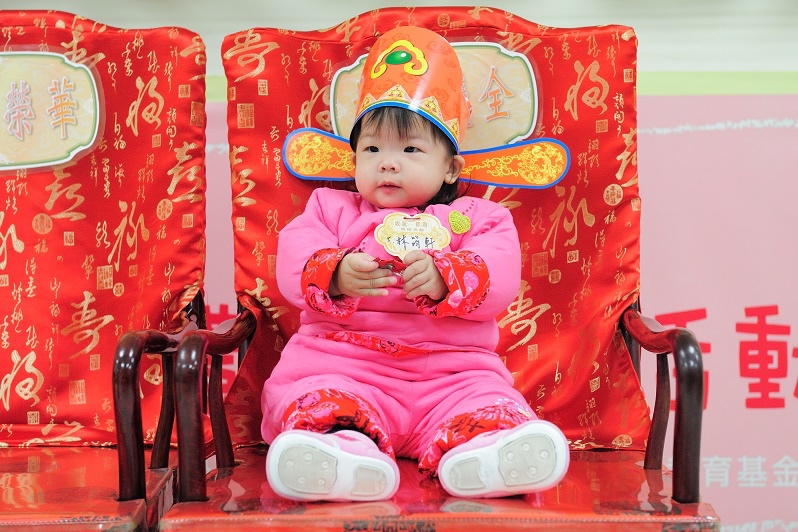 #17 一梯次四個寶寶,先在起點幫寶寶穿上可愛肚兜(郭元益準備的,很有古禮的感覺)