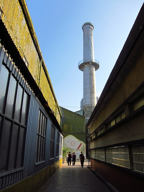 #11 要去「蔗埕花海」得走過這條走廊,配上糖廠煙囪,這個景個人覺得很讚!所以趕緊拿出小相機按它個一張!