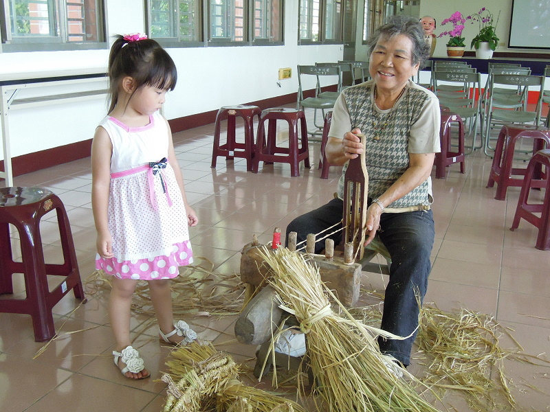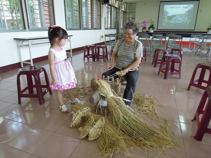 #24 一位社區阿嬤正在示範編草鞋~
