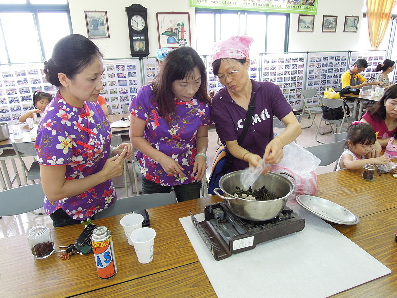 #27 志工媽媽正在為我們這一桌示範紅棗蜜餞的作法...