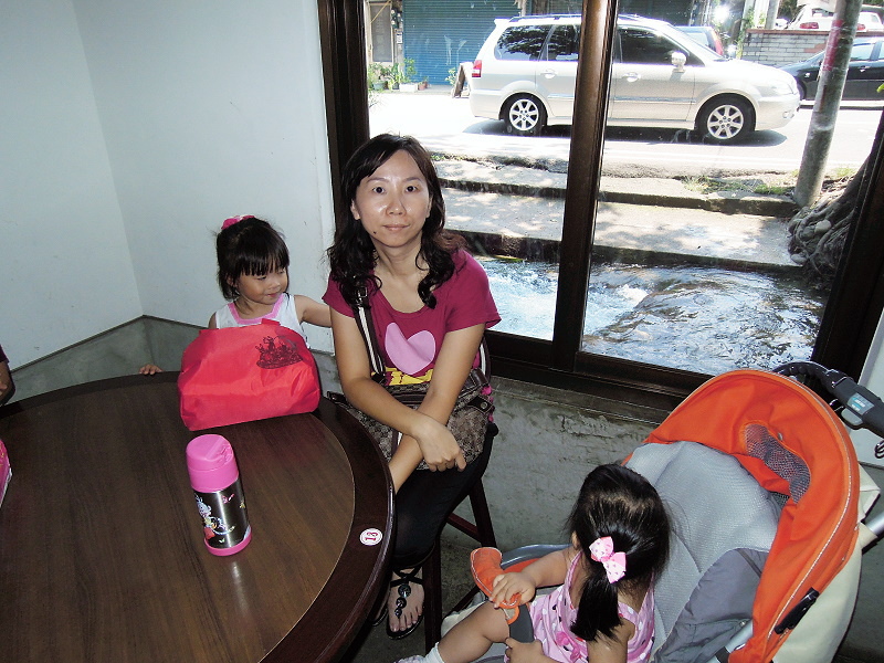 #48 好不容易終於輪到我們了,我們家被分配到的這個位置很不錯,窗外就是流過麵店的一條小溪(水溝?),有一些遊客、自行車車友甚至特別停下來洗個手、潑個涼、泡個腳...(這樣好嗎?我個人強烈懷疑中...)