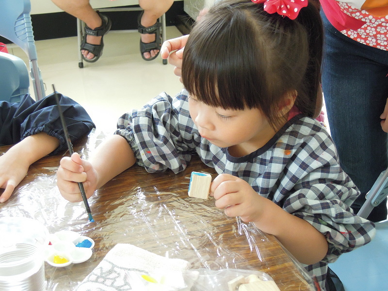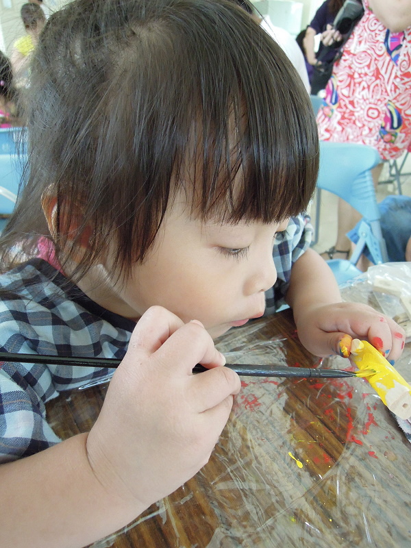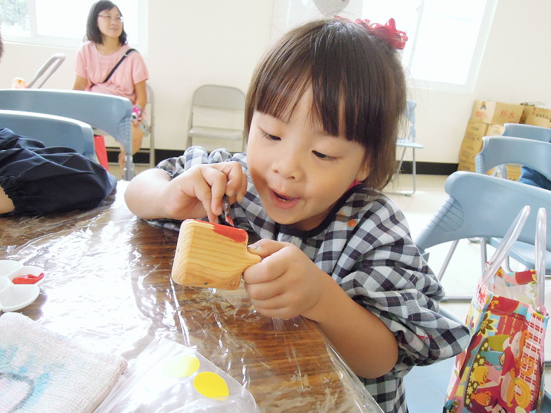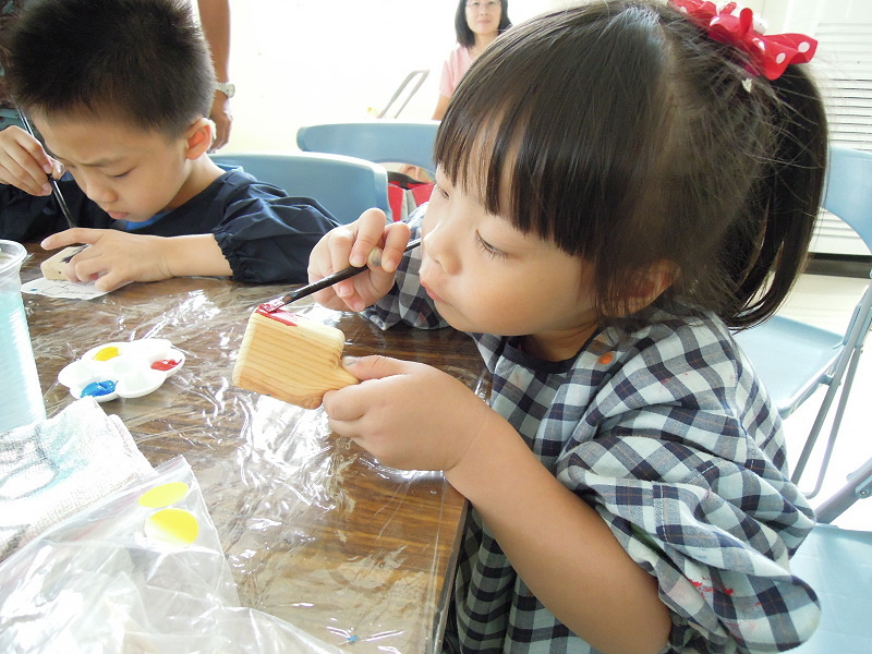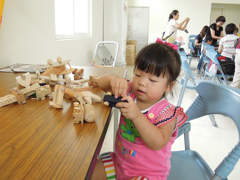 #14 當林家姊姊正在上色彩繪的同時,林家妹妹已經把健康公園的遊樂器材玩了N遍,然後又回到活動中心內繼續玩主辦單位提供的木工積木~
