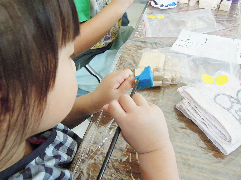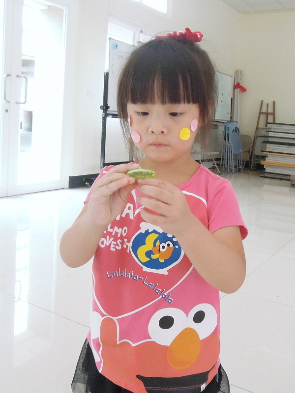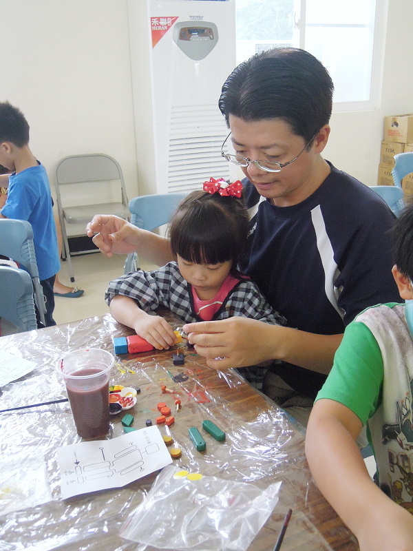 #18 林家姊姊完成彩繪了也跑來玩積木,而機器人部件正在等待自然風乾~