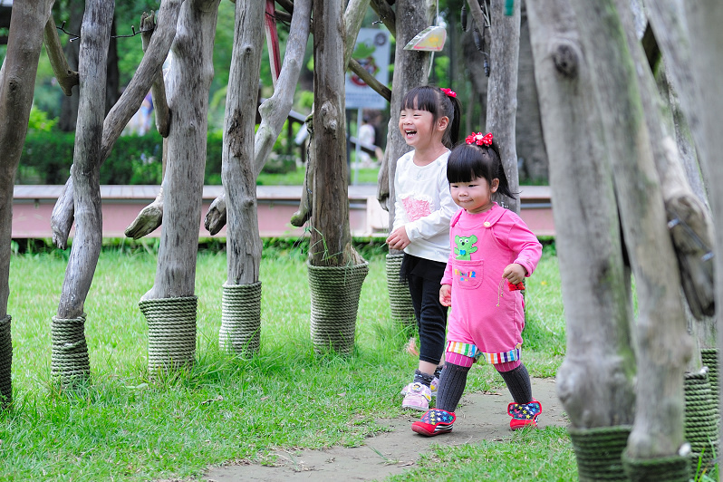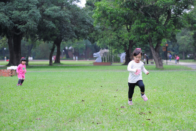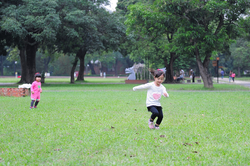 可惜這個時間正是林家姊妹熟睡的時刻,所以我們就待在遊覽車上沒有下去,等到兩姊妹醒了之後,才趁發車前幾分鐘讓她們下去在藝文中心周圍草地玩一下~