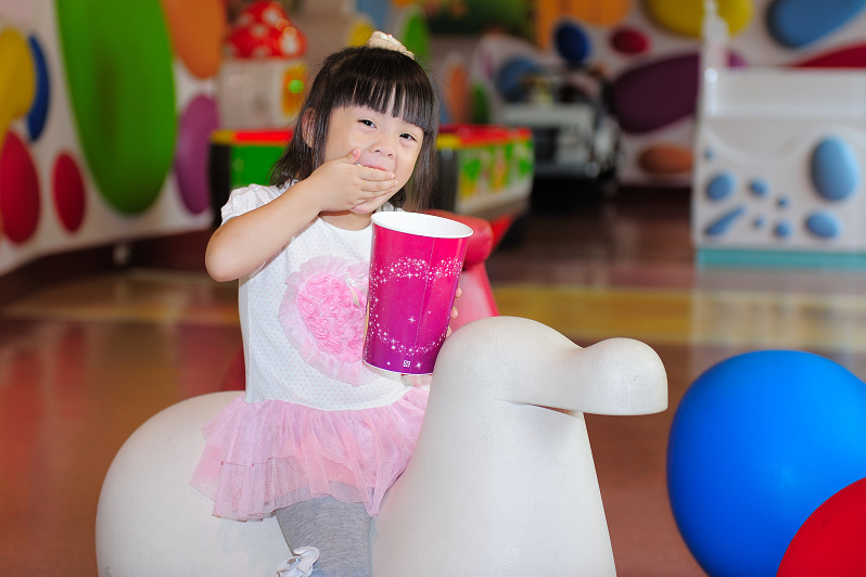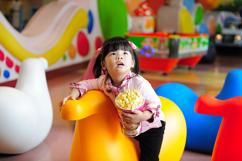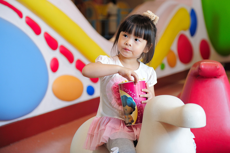 #11 中場休息,我們買了一桶爆米花給林家姊妹吃,她們都吃的很開心!
