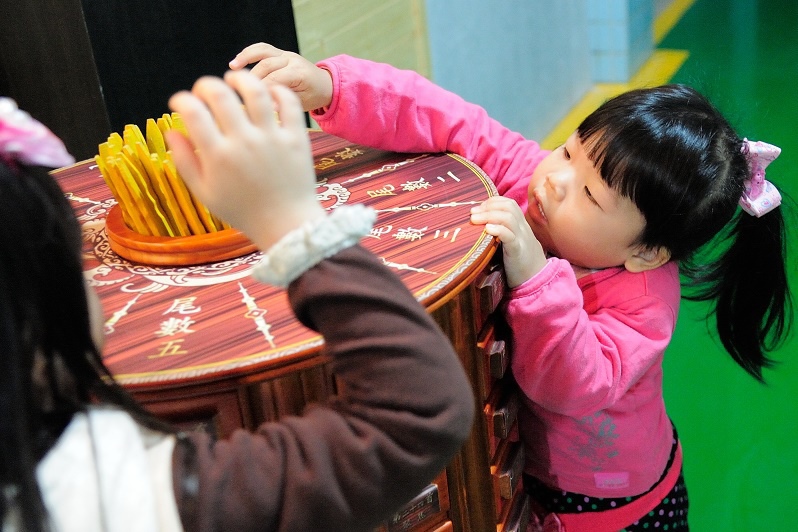 #35 在大人採購的時候,小朋友跑到一旁玩起籤筒來了...