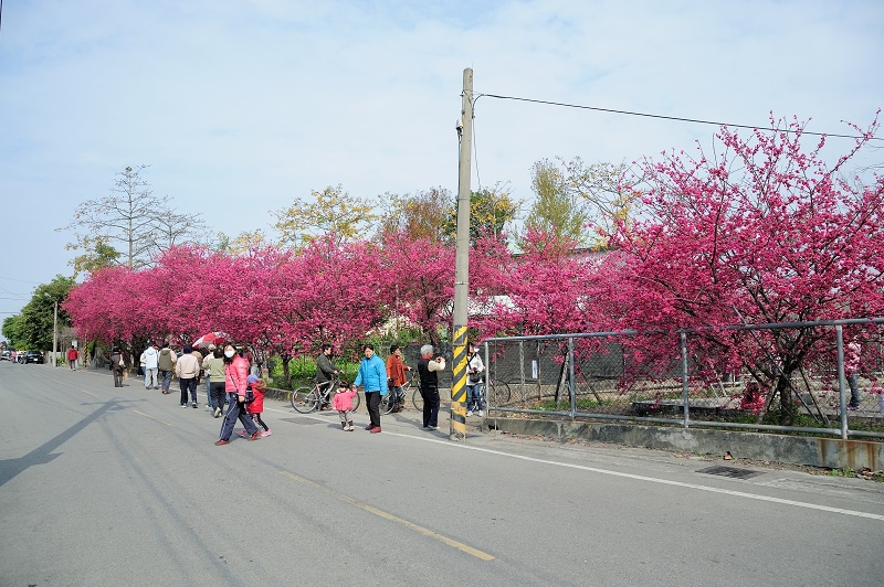 起因為六年前后里鄉公所撥經費給派出所做綠美化工程,現任所長到任之後把不要的樹砍掉,獨留櫻花之美,造就了今日的一片粉紅色美景,派出所也搖身一變,成為賞櫻遊客中心!