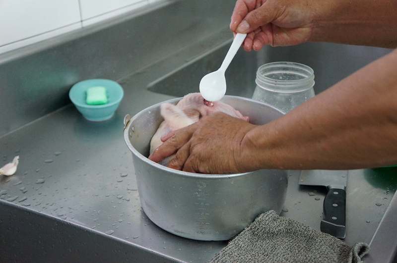 #6 主人家立刻又準備了另一隻雞下去烤,他們說這是他們鹿谷特有的放山雞,不用其他佐料,只有簡單地抹上鹽巴,烤起來就很甜很香了!