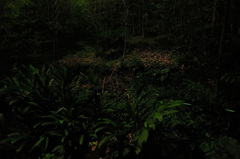 #17 照片中綠色的光點就是螢火蟲飛行的軌跡...
