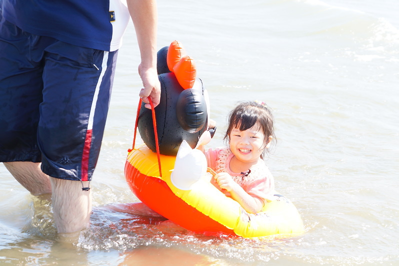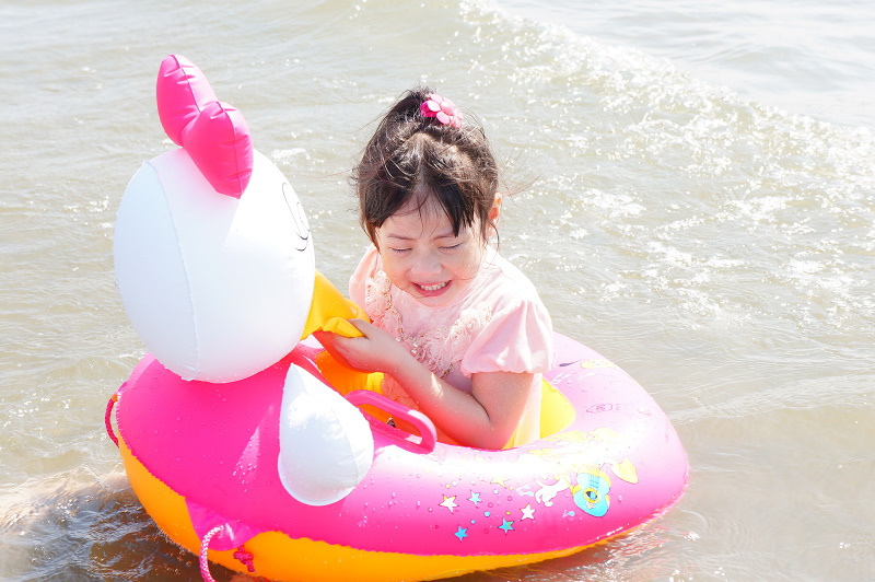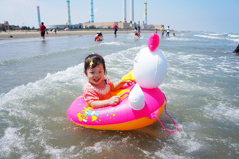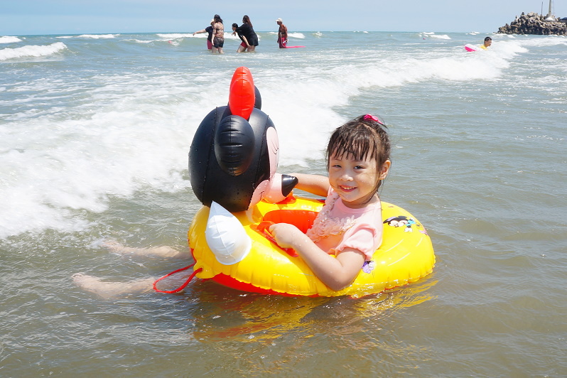 #3 我們在攤販區幫林家姊妹各租了一個卡通游泳圈~(姊姊一心只想快點玩,所以擺臉色給我們看......Orz)