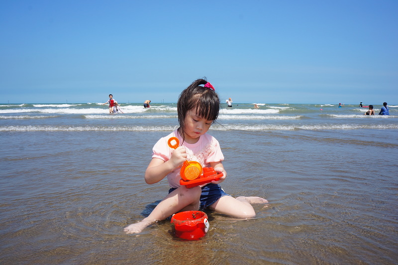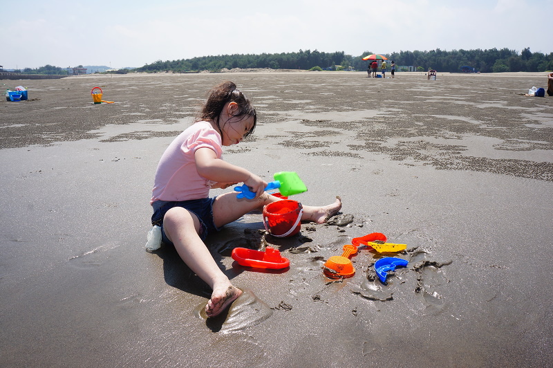 #21 這一天上午是漲潮,所以我們的野餐巾位置也要一直往上移,邊玩邊移~