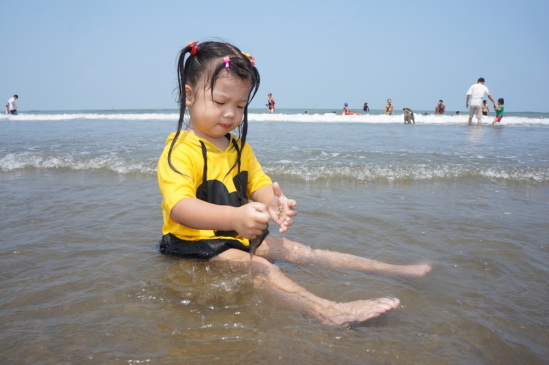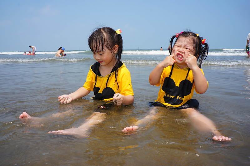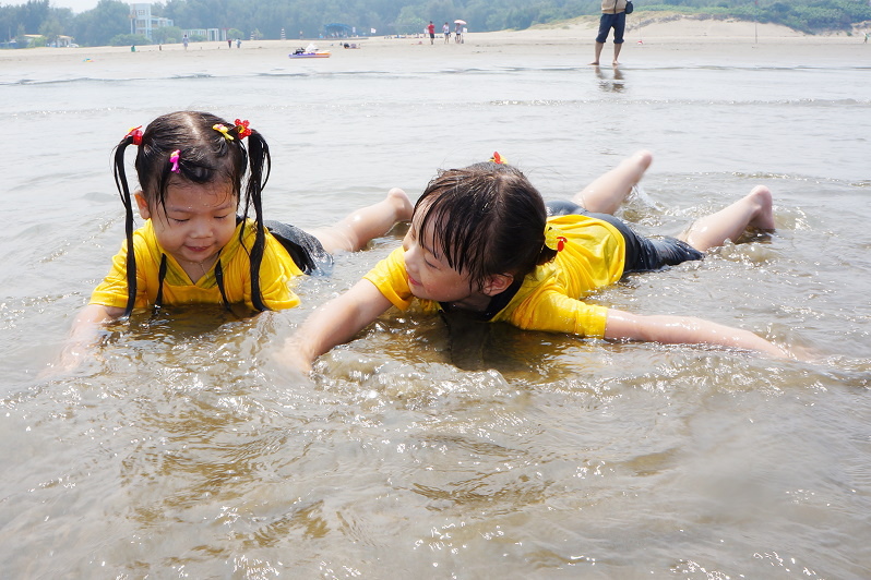 天氣熱的受不了,還是帶孩子們去海邊玩水最好了~