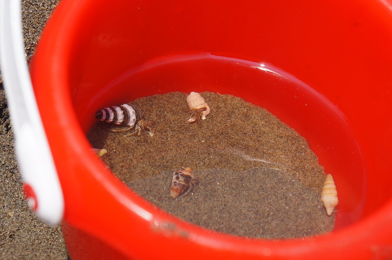 #41 臨走前我們家碰到另一個家庭,他們家的兩個小男生合力挖了一座坑道,裡頭放了很多隻他們找來的寄居蟹~