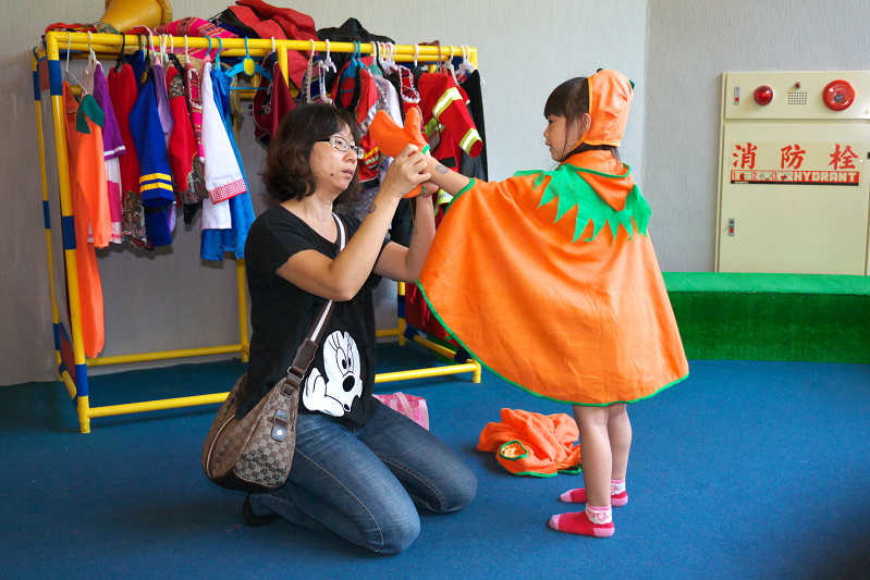 #8 這個扮演角可以讓孩子換上各種不同的服裝,很有趣,林家姊妹也玩的很開心,還唱歌跳舞呢~