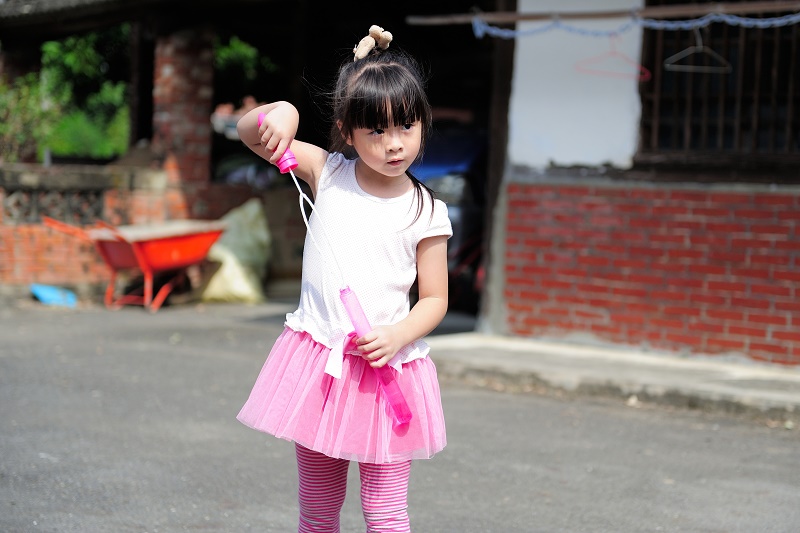 #2 林家姊妹在老家三合院前的曬穀場玩起了吹泡泡~