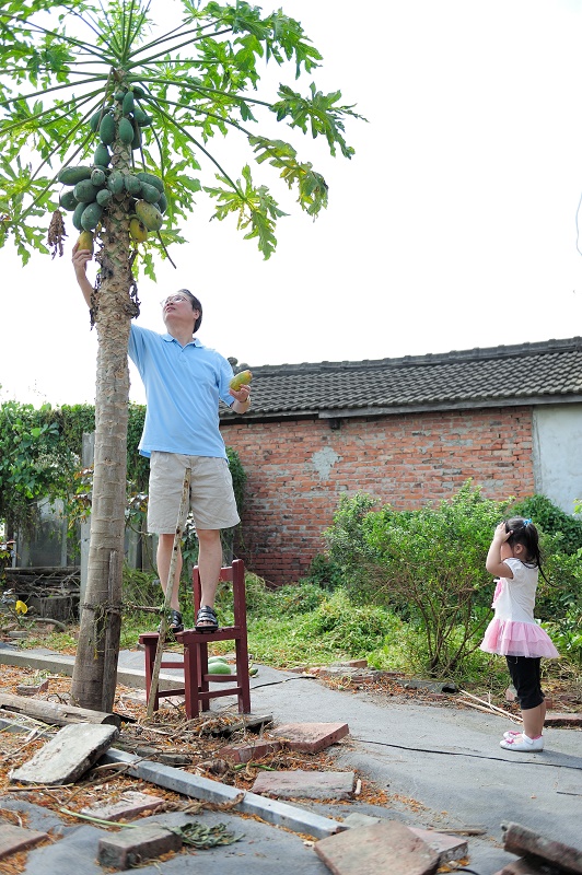 #7 三叔公摘木瓜,等下午餐後就有水果吃了~