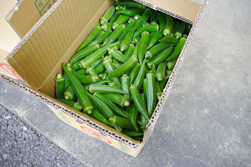 #18 鄉下的人情味就是濃厚,長輩的兒時玩伴一聽到我們回來了,馬上送來兩箱自己的作物 - 黃秋葵~