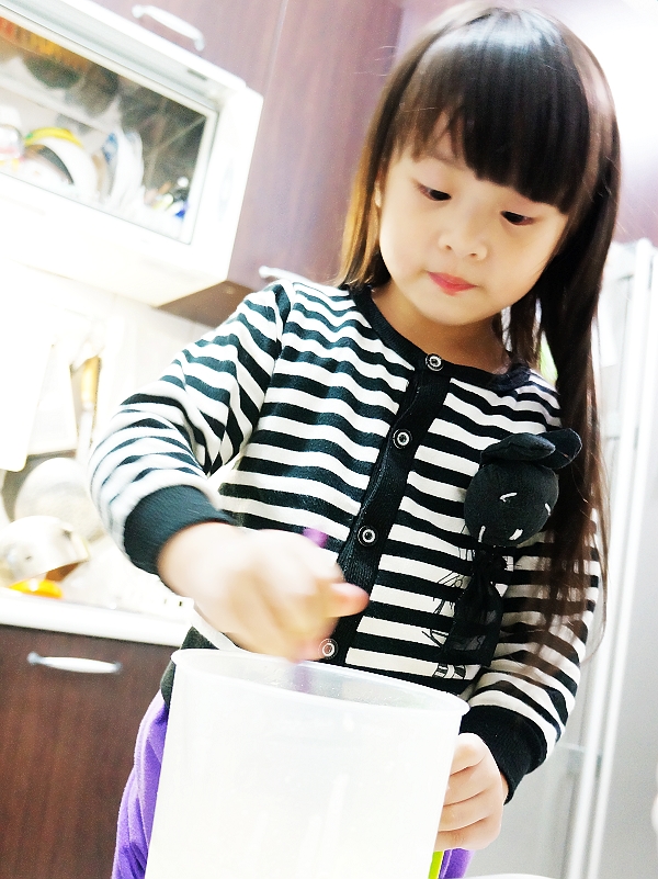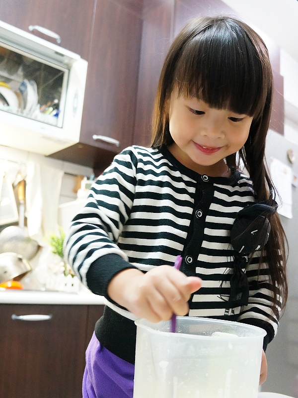 #4第四步驟:鬆餅粉+牛奶+雞蛋,攪拌均勻