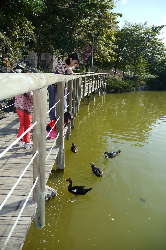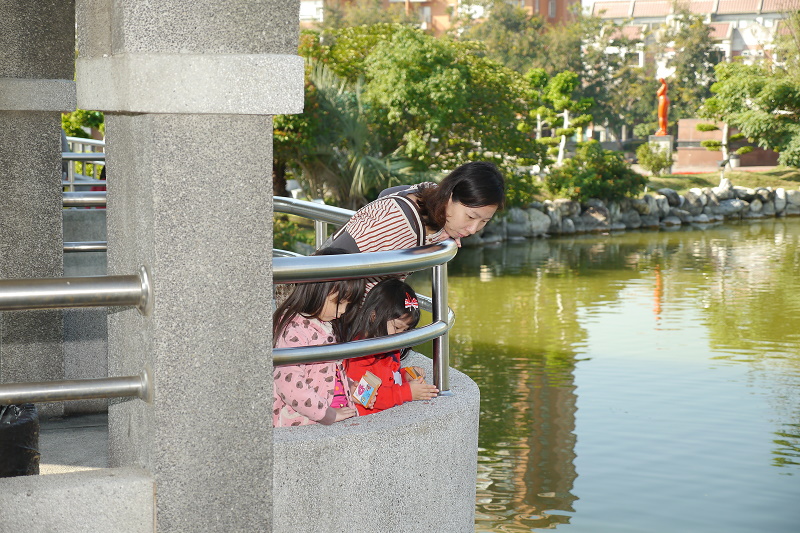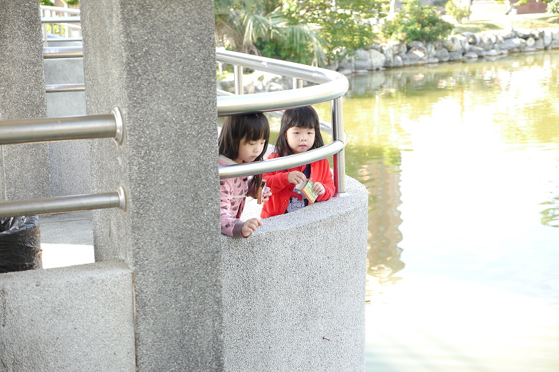 我們家並沒有計畫出遊,所以帶林家姊妹來豐樂雕塑公園餵烏龜~