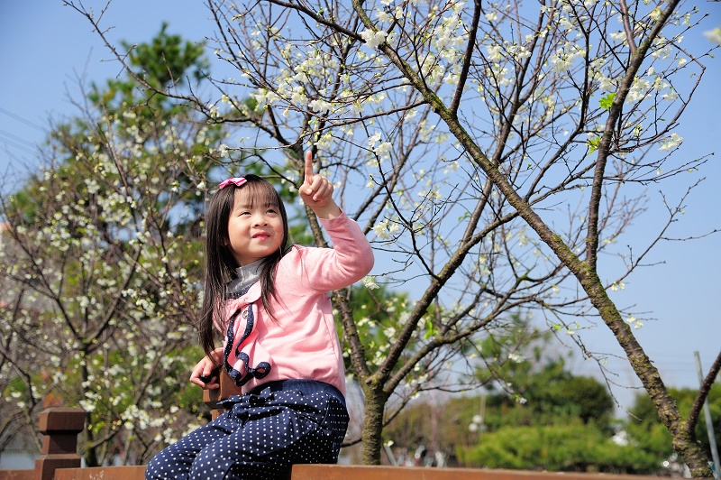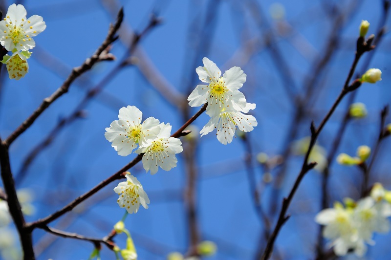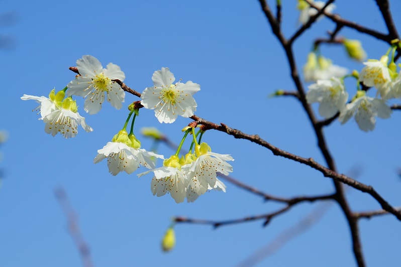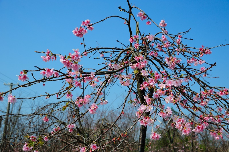 #3一般櫻花的枝條都是橫生或縱生,但園區主人張洲府先生卻利用台灣原生早種山櫻,與日本染井吉野櫻配種,成功栽培出枝垂櫻,樹形特殊、線條優美,已向經濟部註冊命名為「洲府枝垂櫻」~