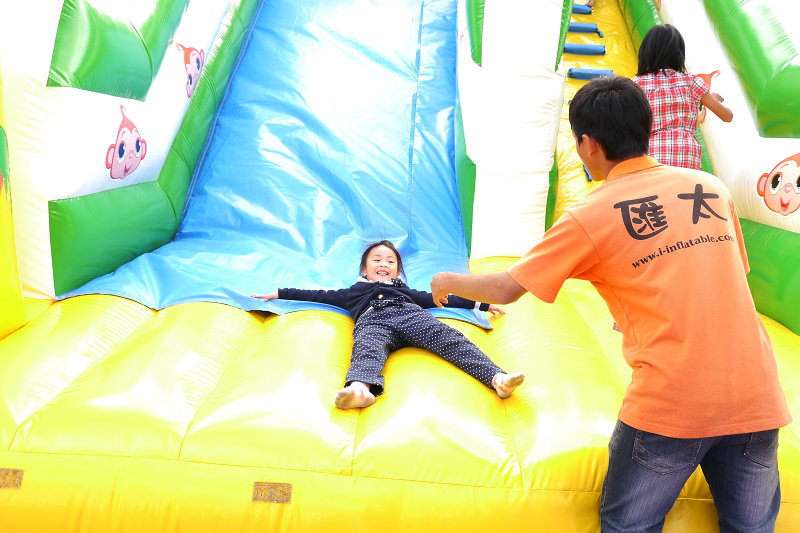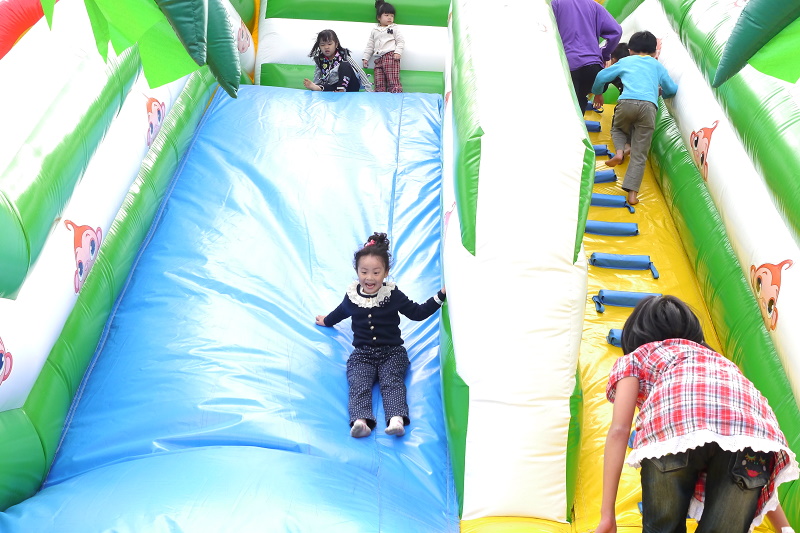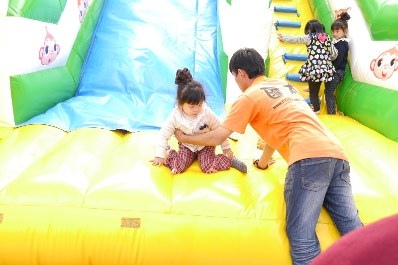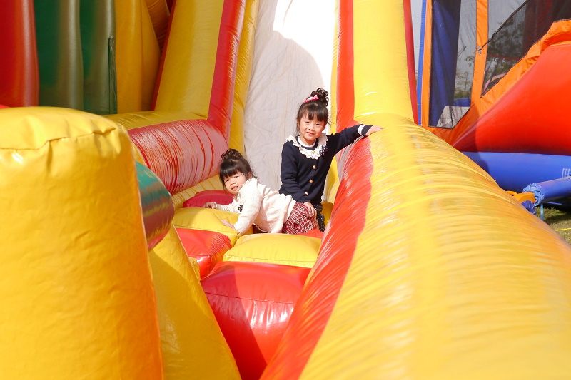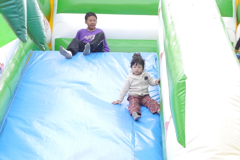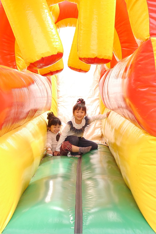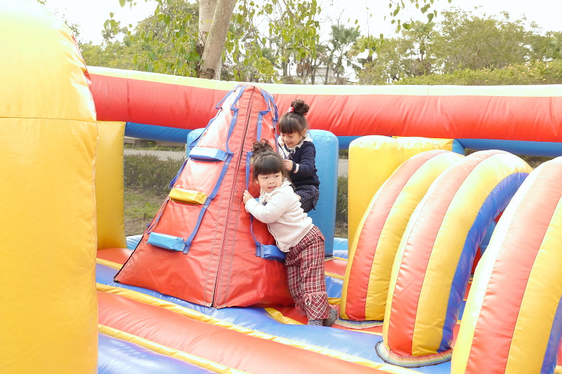 #22 今年林家姊妹一走進溪州公園就被氣墊樂園給吸引住了,所以一路上情緒都很不好,一直吵著要玩,我們一路安撫好不容易把公園走了一圈才讓他們如願購票進入遊玩~
