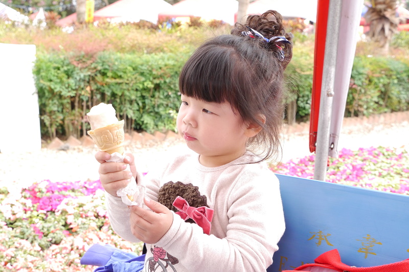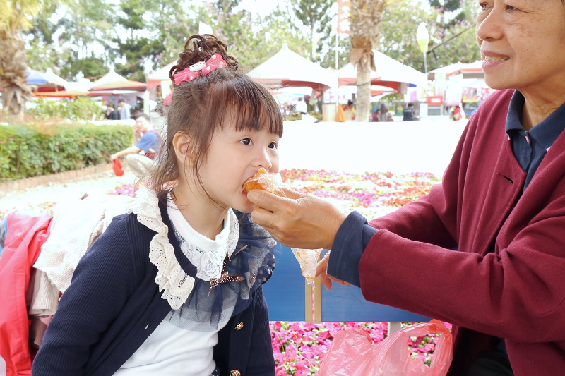 #33 林家姊妹玩得很累,我們家就在公園內的攤販區補充能量,今年的活動比去年進步了喔,因為遊客可以坐下來休息的區域變多了,這是很好的設計~