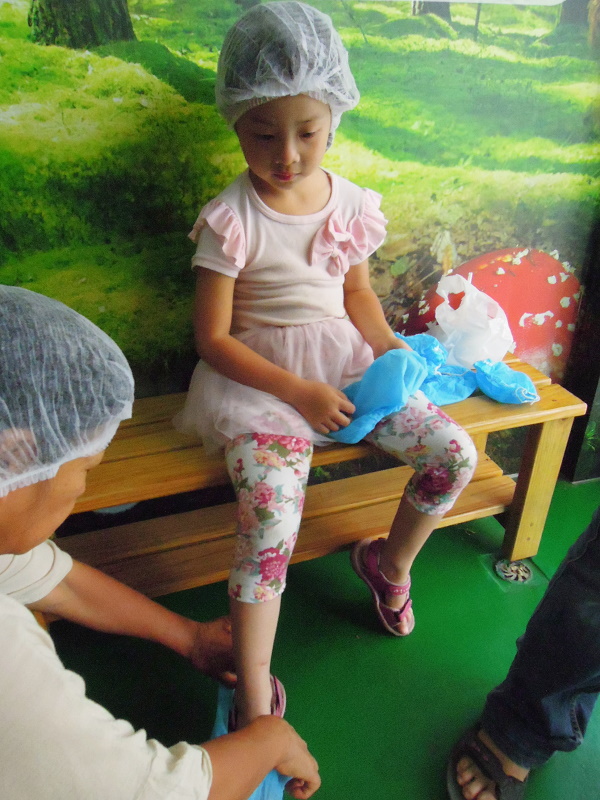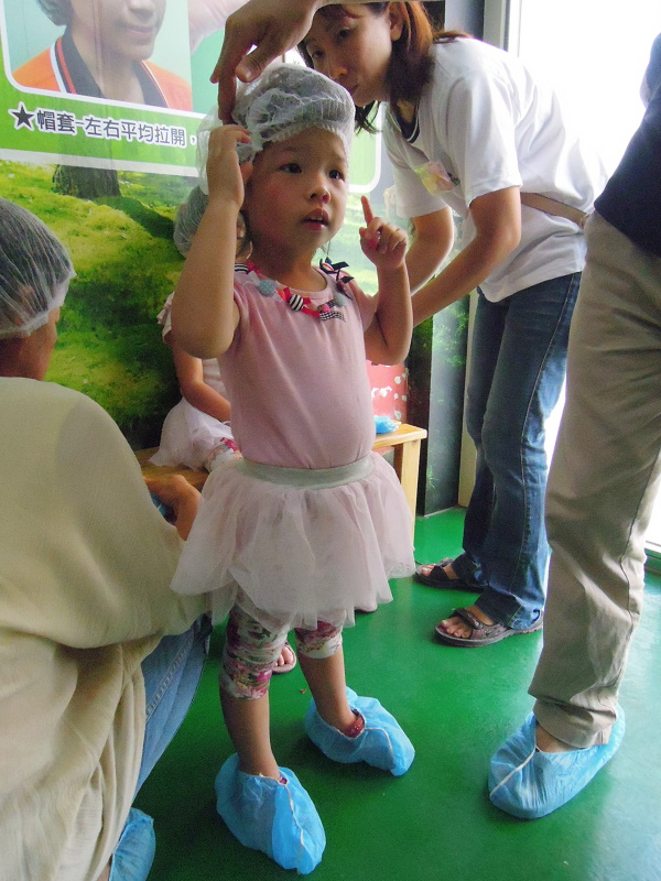 要進入廠房之前要先戴上衛生頭套和鞋套~