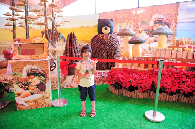 以「臺中農產品 - 臺中農讚」為主題,規劃有創意花卉、花藝、伴手禮、菇類展示、果樹、農產等區,用臺中市生產花卉火鶴、文心蘭等裝飾,展現大臺中在地各種優質農特產品。展 示亮點有以臺中市酒莊酒瓶,當季水果、蔬菜、雜糧和稻米組成的地景「玉山」,「臺灣黑熊」及世界名畫「拾穗」等圖型,展現吃在地、食當季的綠能臺中特色, 推廣「身土不二」-「愛鄉、愛土、愛咱的農產品」的飲食觀 。