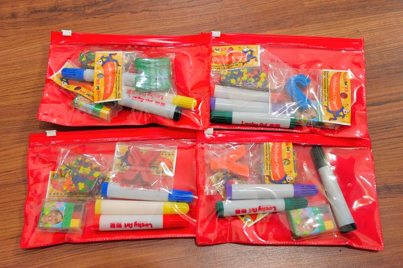 #71 這些就是蜡藝彩繪館最終每個人可以拿到的戰利品:三支彩色筆、造型蜡筆、多重色蠟筆,還有一支可以畫臉、畫身體的三色蜡筆~