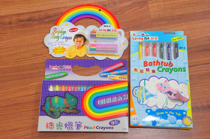 #73 每張門票可以抵100元消費,所以我們家買了人體彩繪蜡筆、珠光蜡筆與浴室蜡筆~