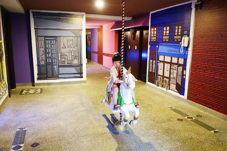 #29 悠活的房間、走廊牆面跟一般的飯店不一樣,走廊上居然還有旋轉木馬(固定的,不會動)~