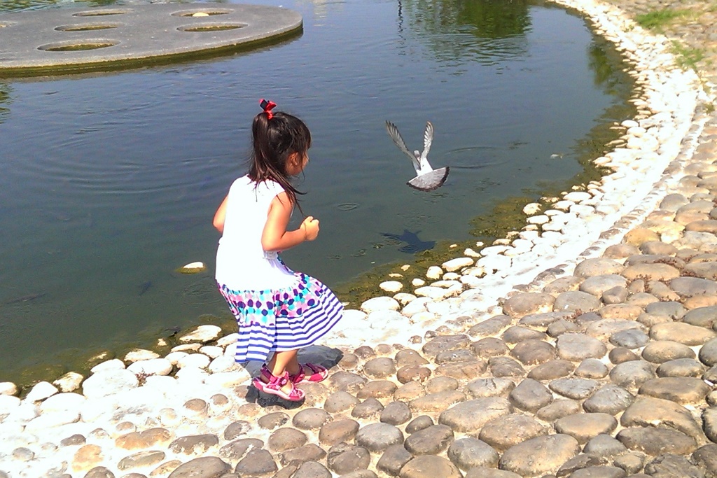 #16 妹妹追鴿子,小心不要掉到水裡去了~