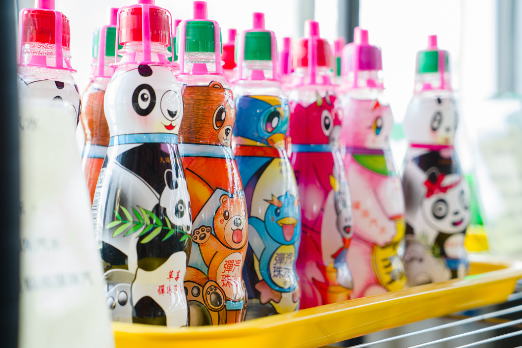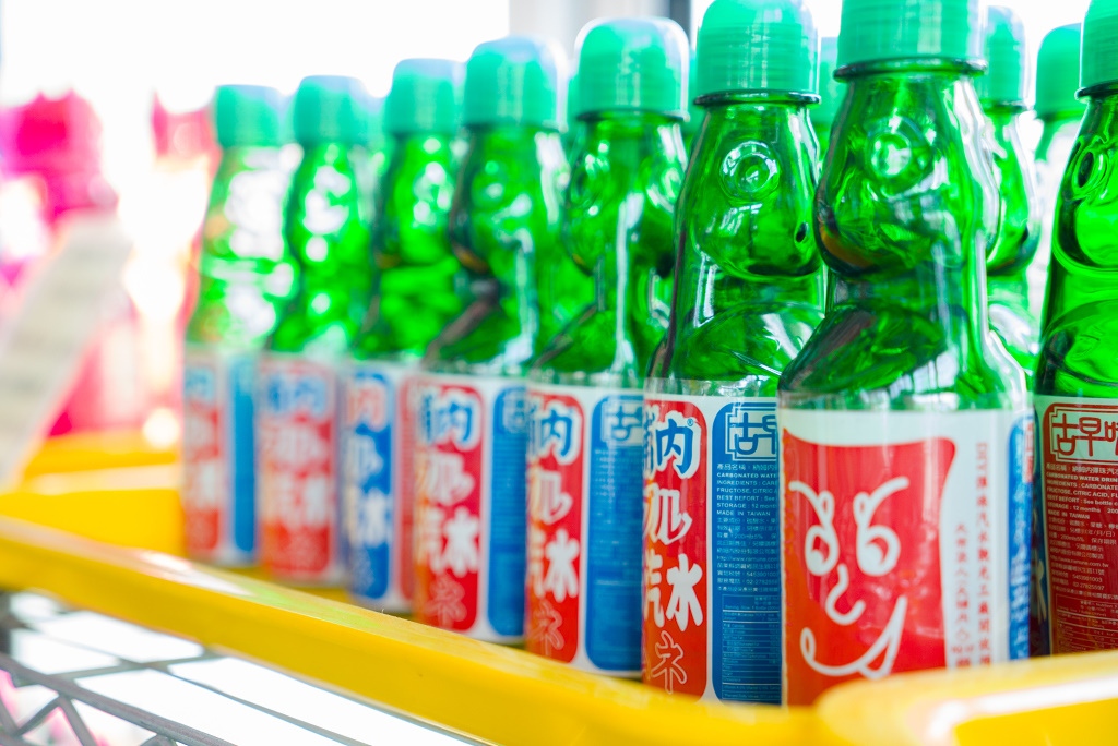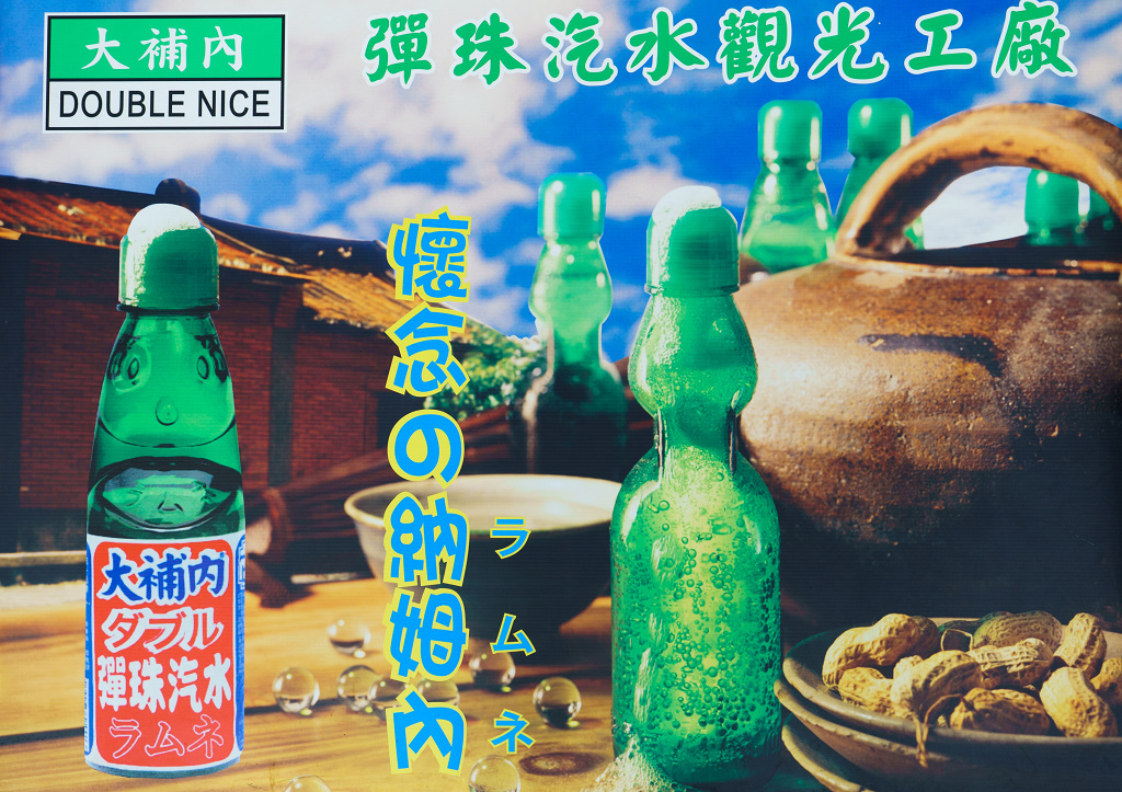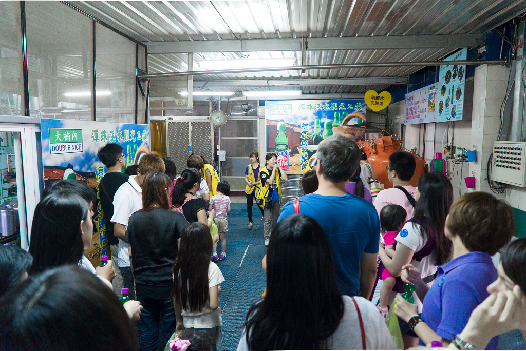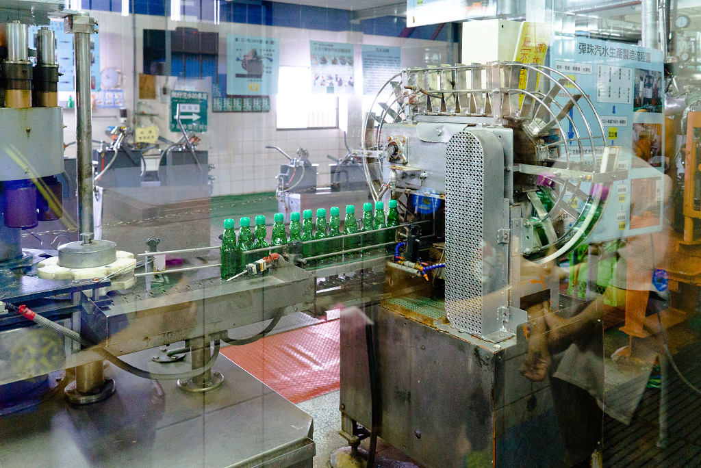 #33 彈珠汽水是喝到飽的,遊客可以一直喝,一直灌,重複這個過程,直到離開工廠之前再裝一瓶帶走~