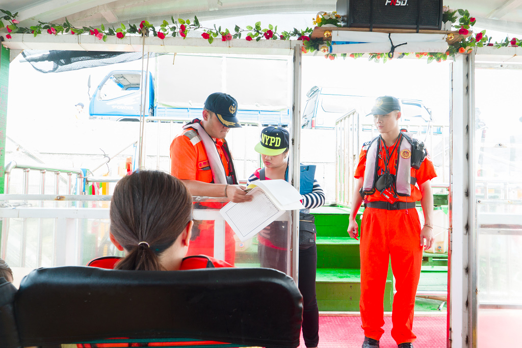 #5海巡人員正在和觀光漁筏工作人員核對名單,不過我覺得這張照片很有趣:海岸巡防局 v.s. NYPD(紐約警局)!