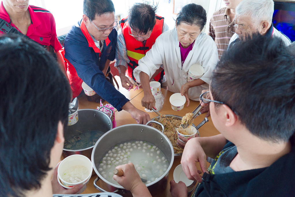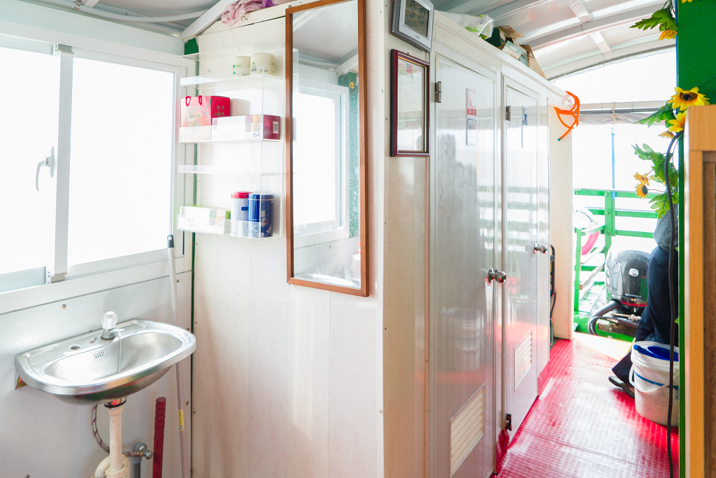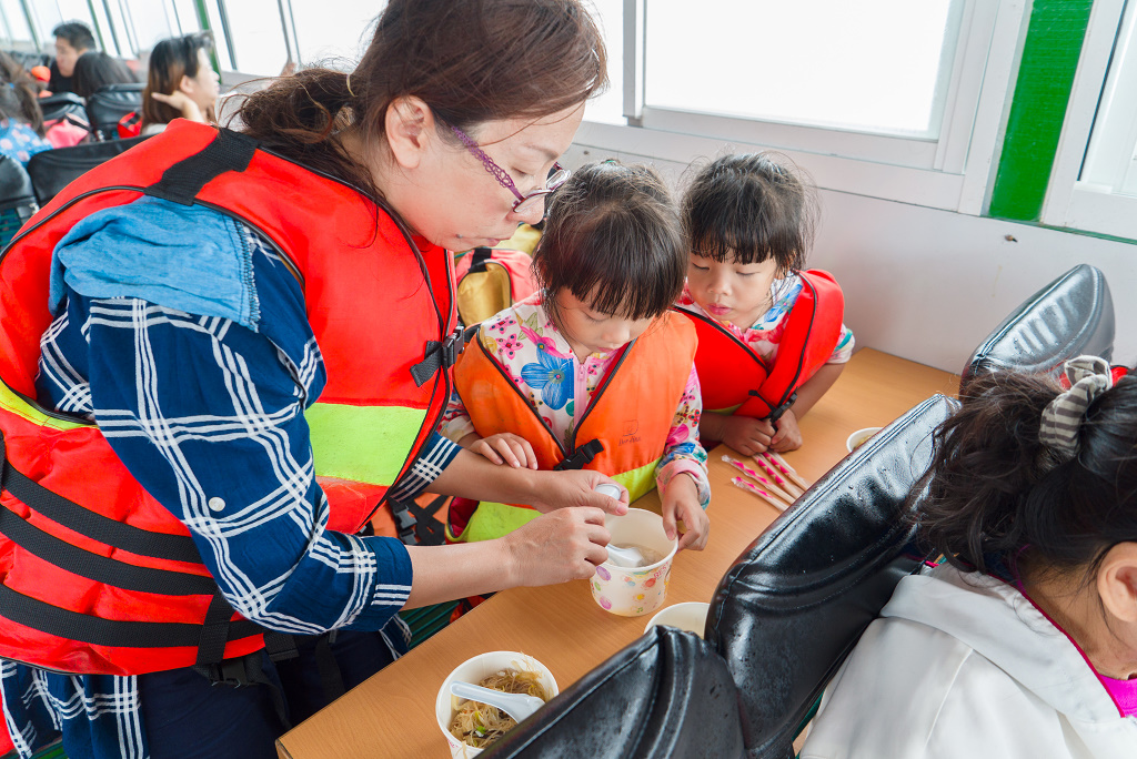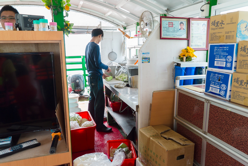 #34 午餐時間到了,幸福號上準備了八菜一湯一水果,全是由這位年僅20歲的少年廚師料理的,餐點十分美味,手藝令我們非常驚訝!