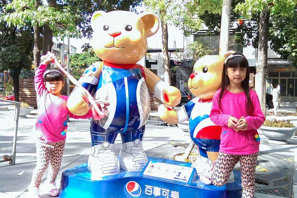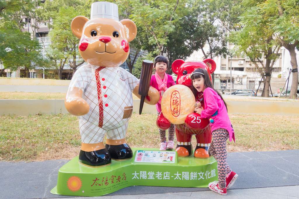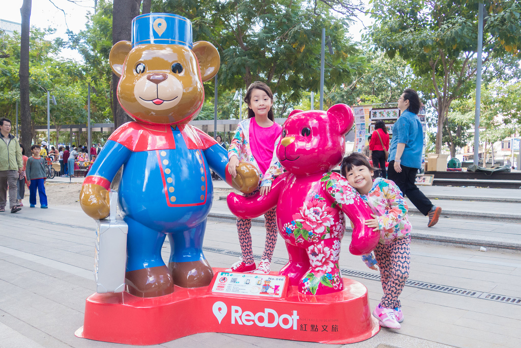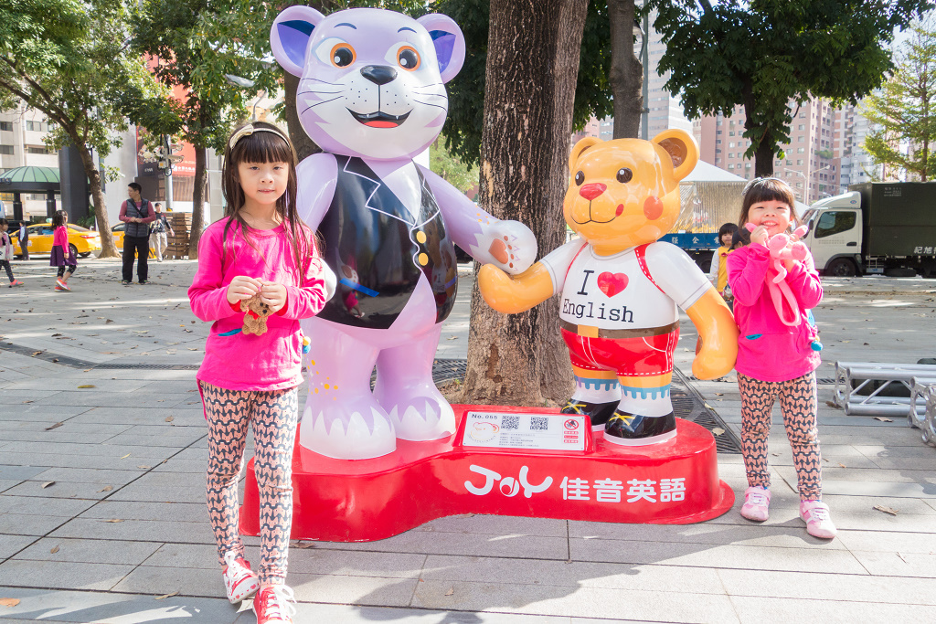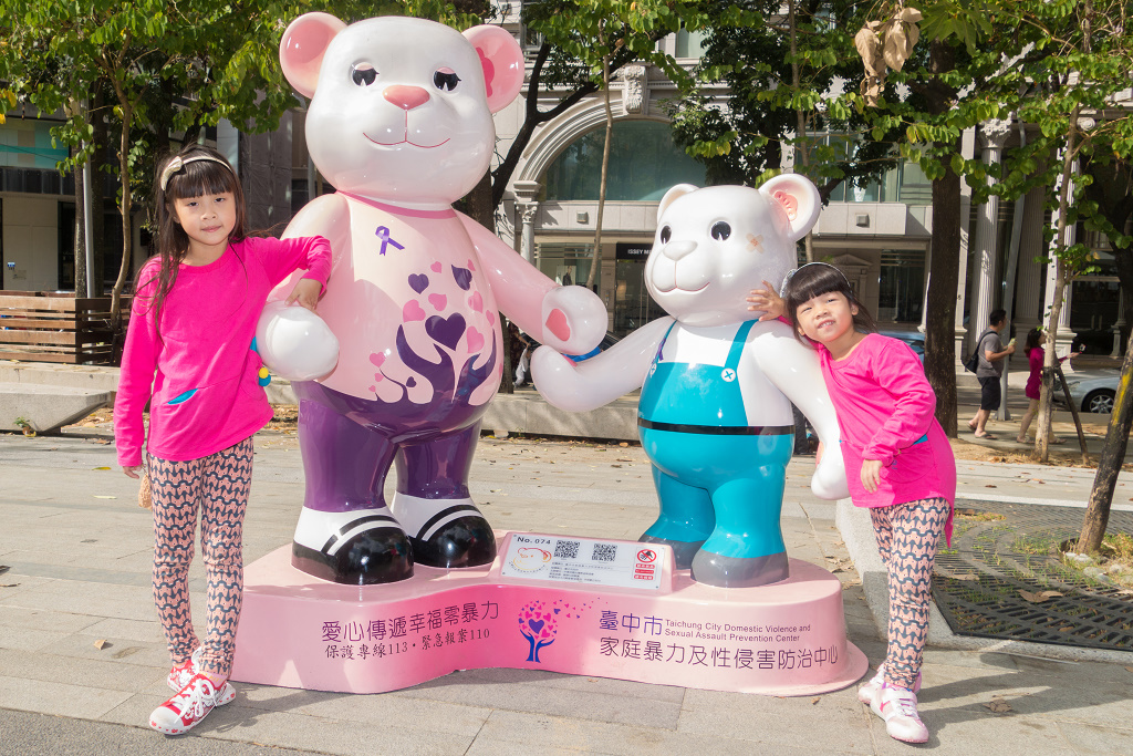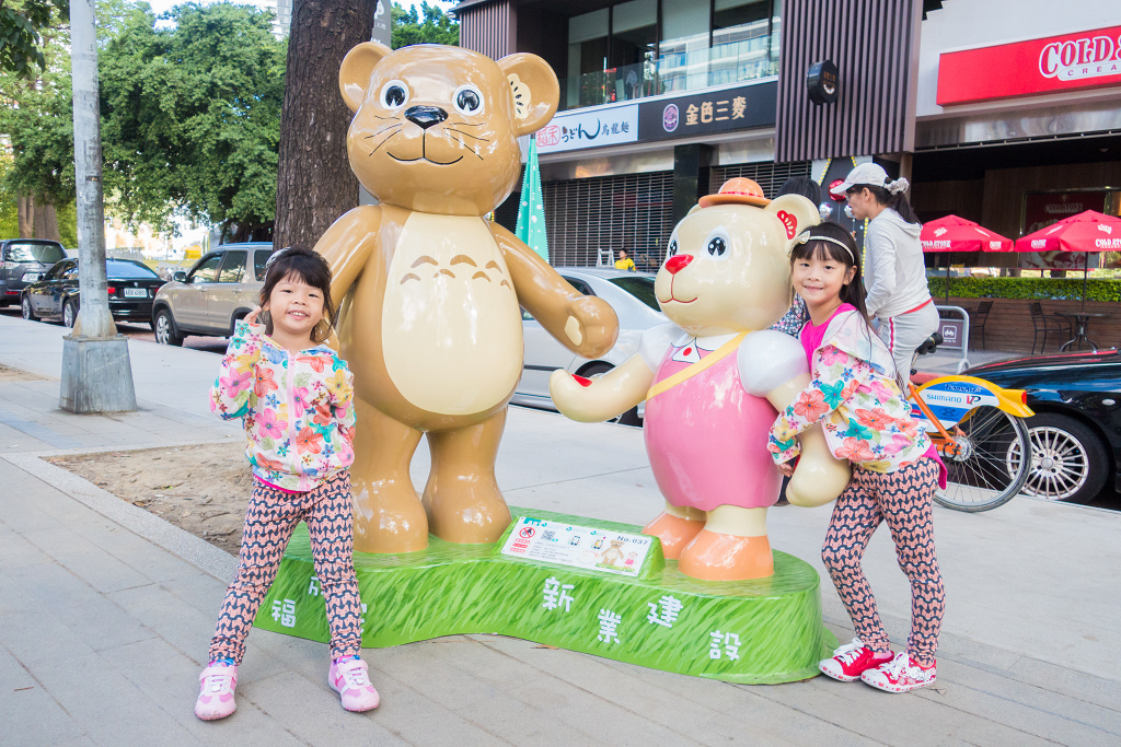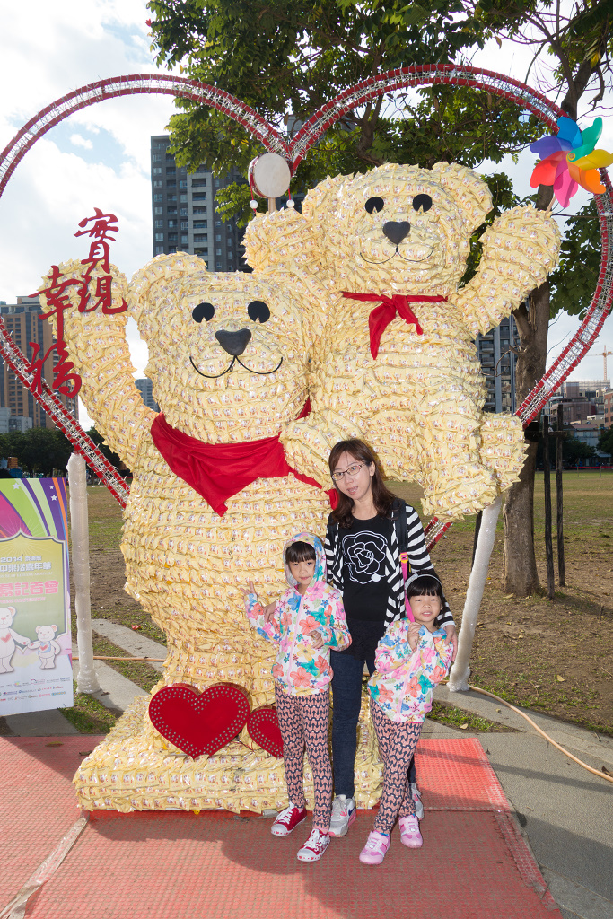 這一屆的展覽活動地點分為三個:秋紅谷、草悟道、臺中國家歌劇院。這一天我們帶小朋友來的是草悟道(市民廣場周邊區域),同時我們也發現今年的泰迪熊與去年不同,每一座都是以「親子熊」的形態呈現,非常溫馨。