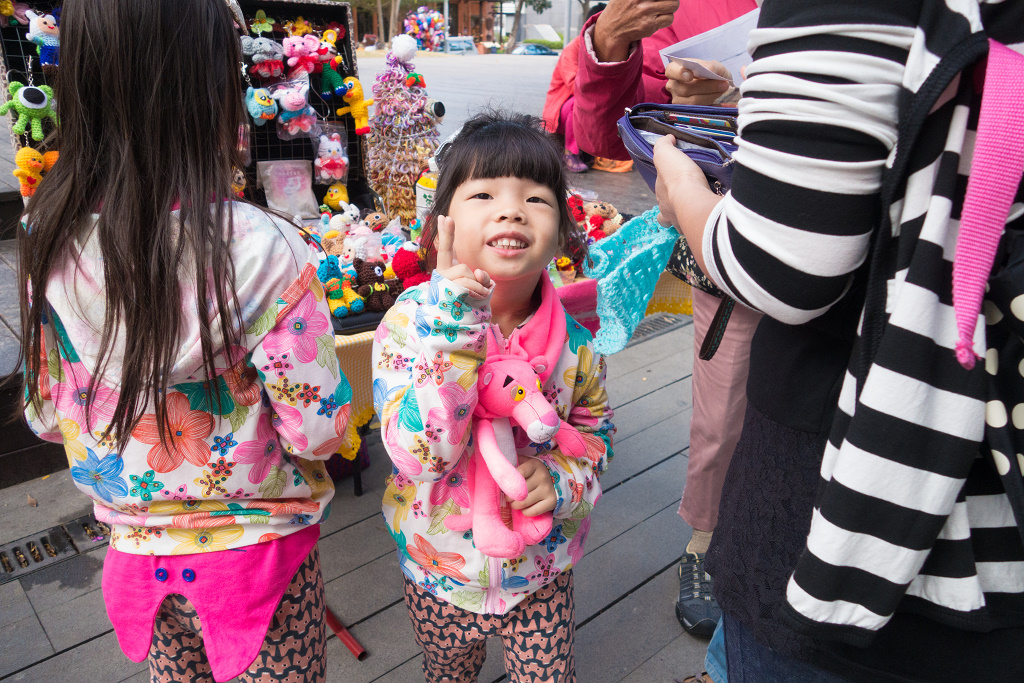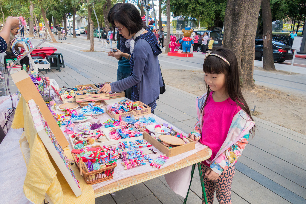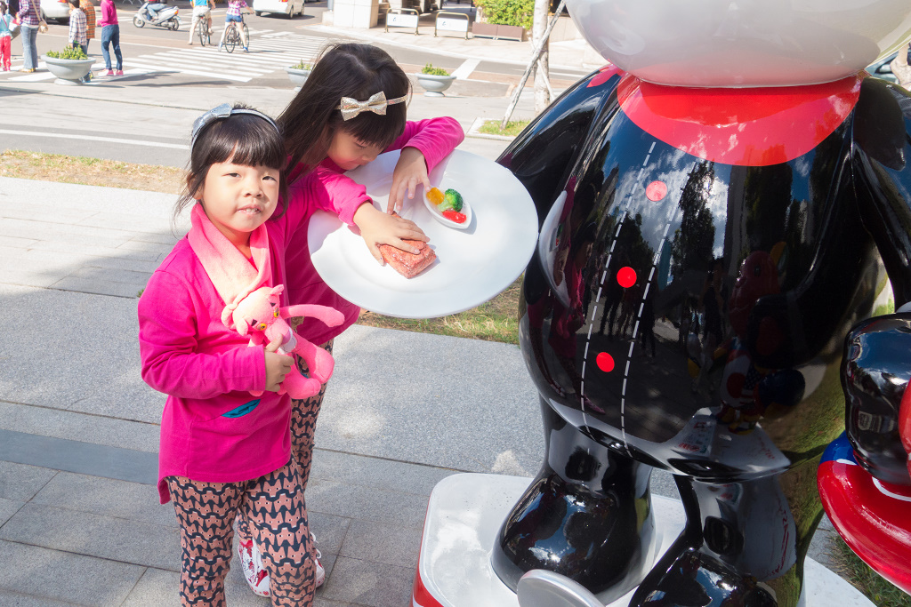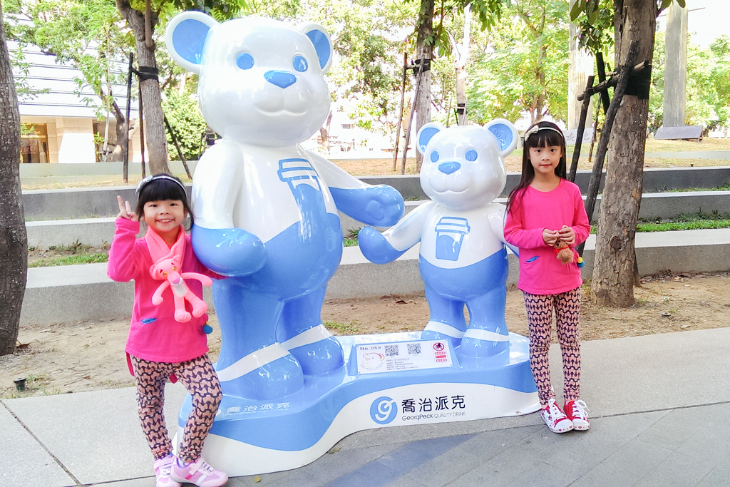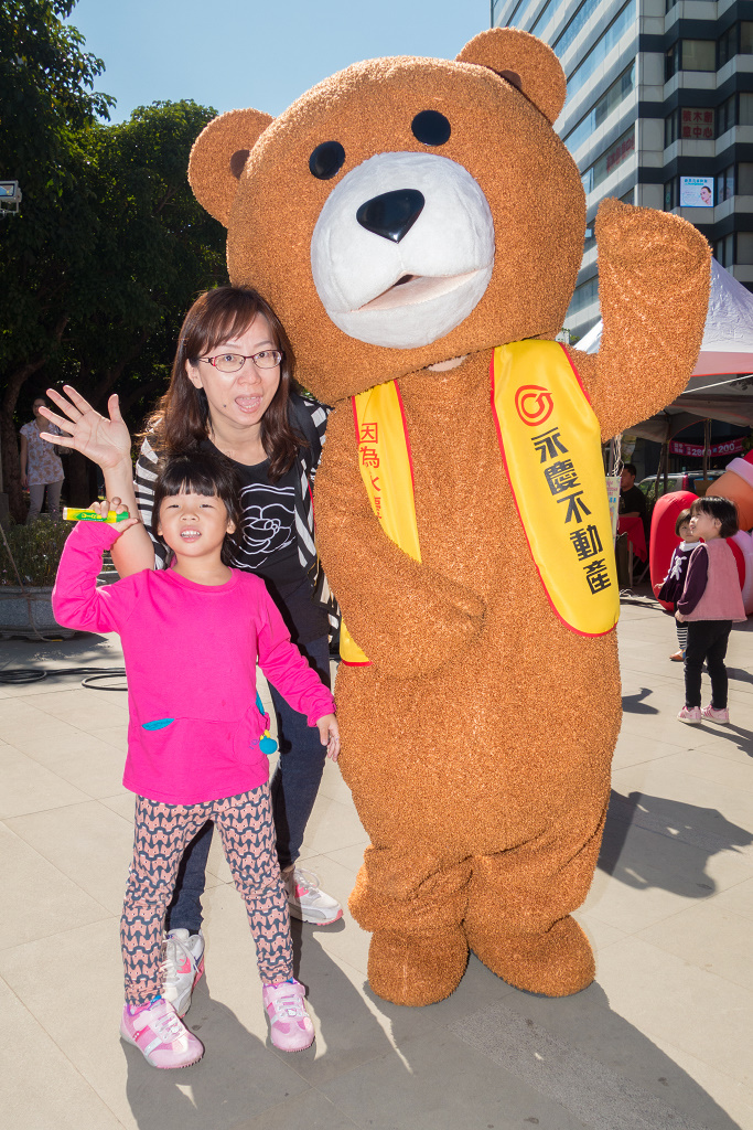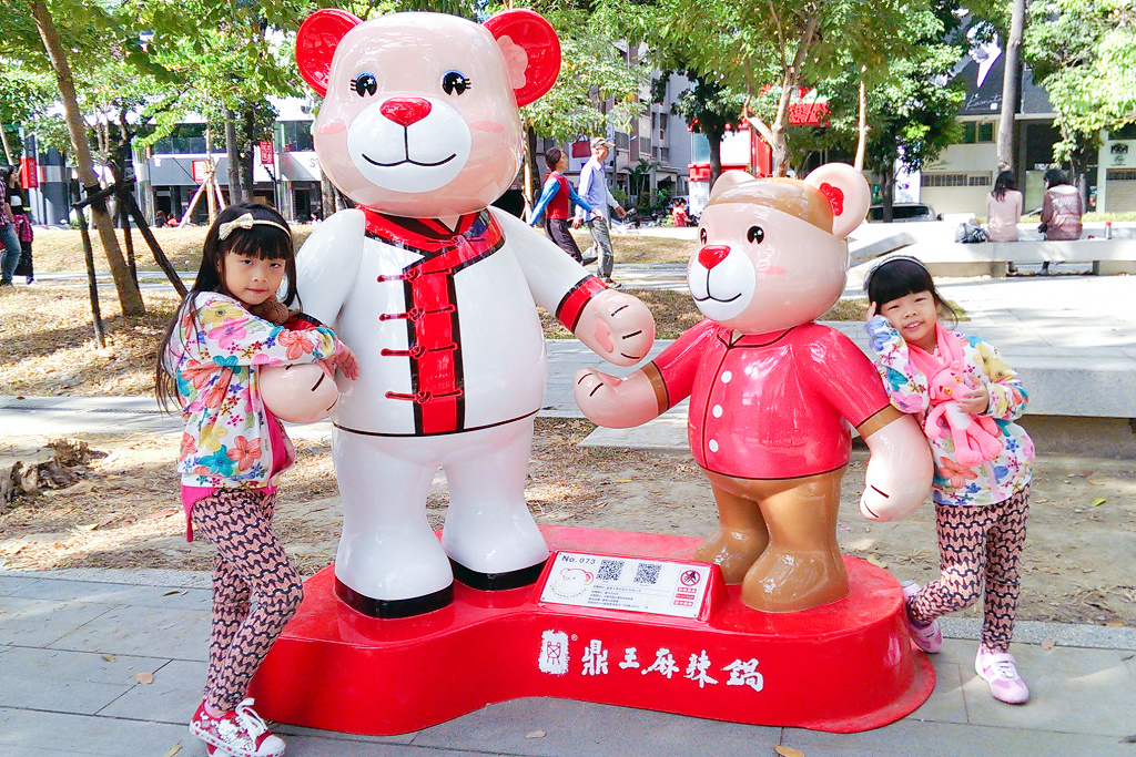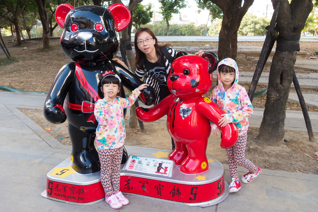 這一屆的展覽活動地點分為三個:秋紅谷、草悟道、臺中國家歌劇院。這一天我們帶小朋友來的是草悟道(市民廣場周邊區域),同時我們也發現今年的泰迪熊與去年不同,每一座都是以「親子熊」的形態呈現,非常溫馨。