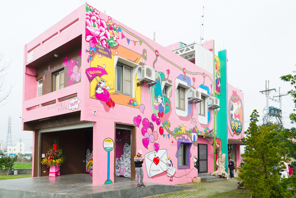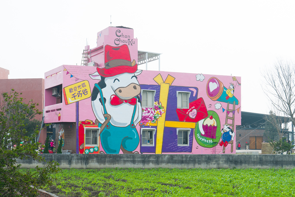 #6 粉紅色建築物加上可愛牛牛彩繪牆超吸睛。