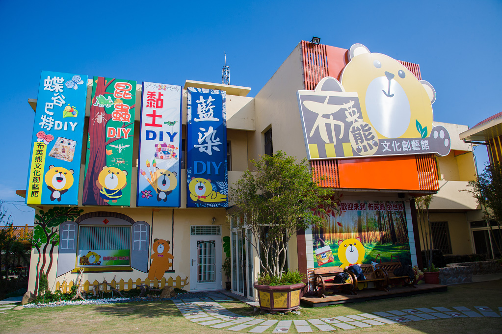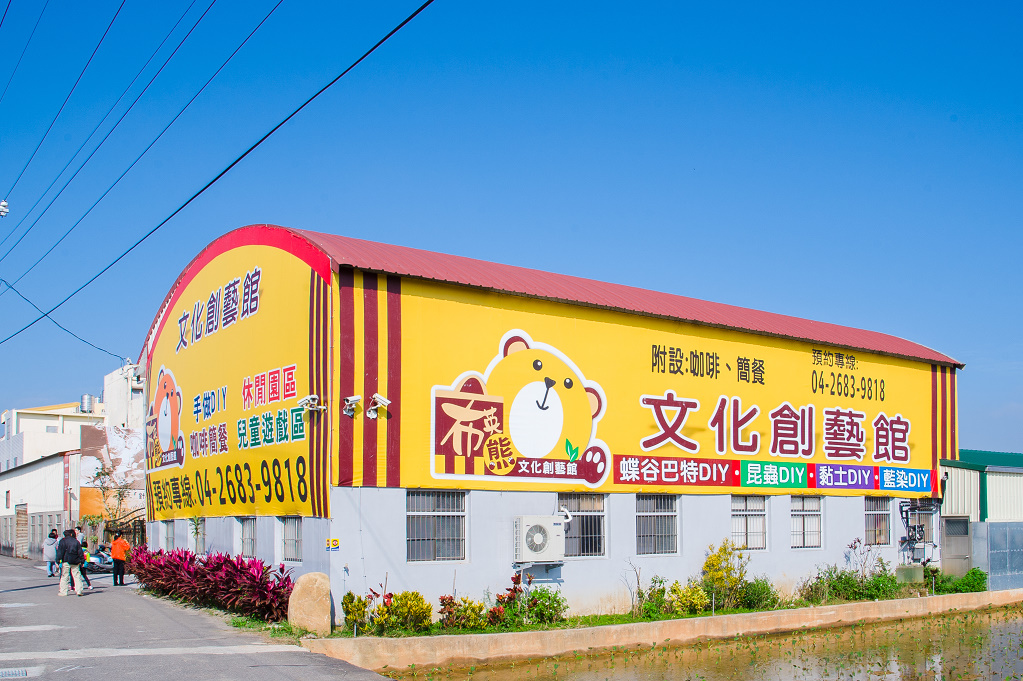 「布英熊文化創藝館」位於台中市外埔區,佔地七百多坪,館內不但擺設早期居民使用的農業器具,也透過老針車分享劉金木、葉秀英夫婦經營針車皮包廠從蓬勃發展到夕陽產業一系列故事,也是外埔、大甲地區產業過程的呈現。