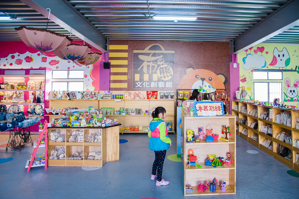#4 館內除了有老針車轉型場、大草坪、兒童遊戲區、植物花園和蝶古巴特、藍染、黏土、昆蟲等DIY課程外,還提供針車布包及蝶古巴特等作品展售與餐飲服務,不僅提供親子休閒的好去處,更藉此推展地方產業及觀光。