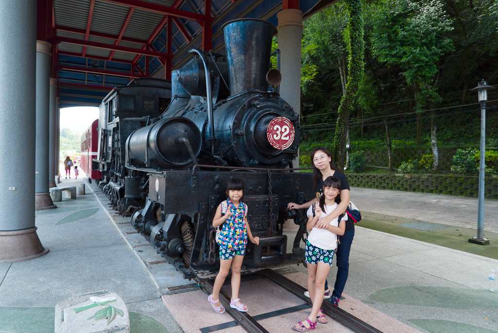 #2 公園入口處陳列著阿里山森林鐵道的32號蒸氣老火車,黑色火車頭與紅色車箱醒目的標示著那段穿梭山林的歲月。