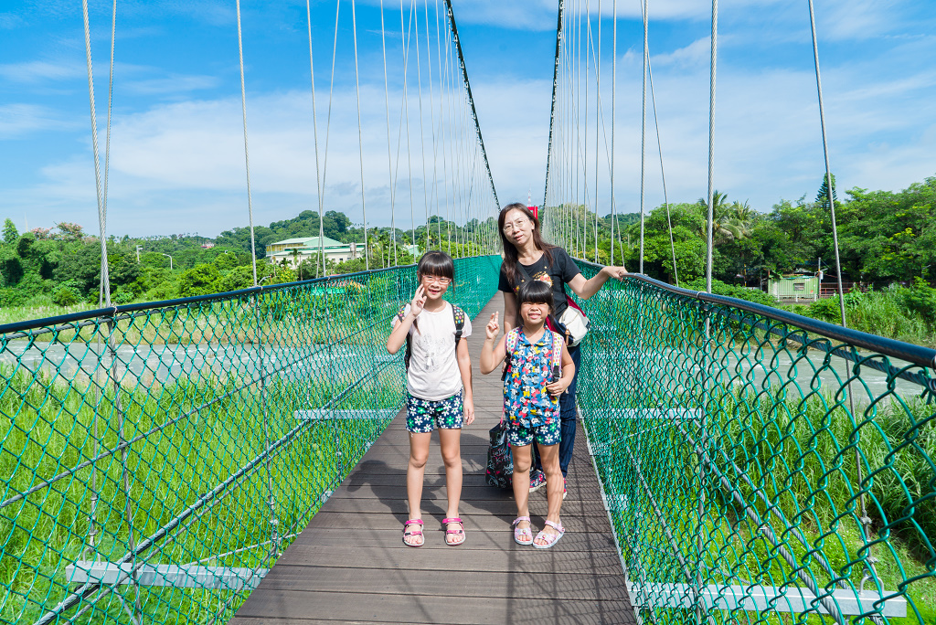 #22 弘景吊橋乃90年度「九二一震災災後重建農業產業振興方案」興建,工程總經費1,280餘萬,農糧署補助911萬,不足款由地方熱心人士捐贈,於2004年7月18日落成,由李豐村建築師設計,王水枝師傅承造,採獨特的八卦橋頭造型,高19公尺,總長206公尺,為興建時國內跨距最長的兩支柱吊橋,橫跨牛稠溪,登上3樓高的觀景台,就可遍覽親水公園映著遠方綠山的美麗風景。