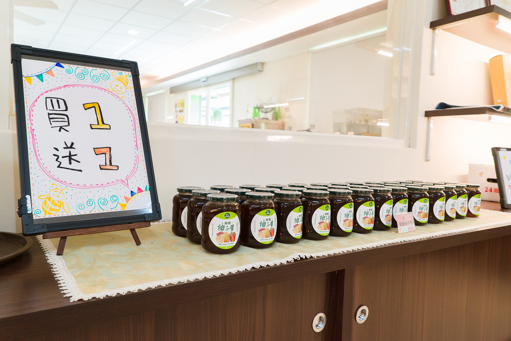 #22 我們家最後選購了蜂蜜、蜂蜜醋、蜂蜜柚子醬,老闆還很大方地贈送我們兩罐鳳梨蜂蜜果醬~