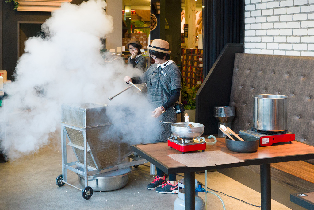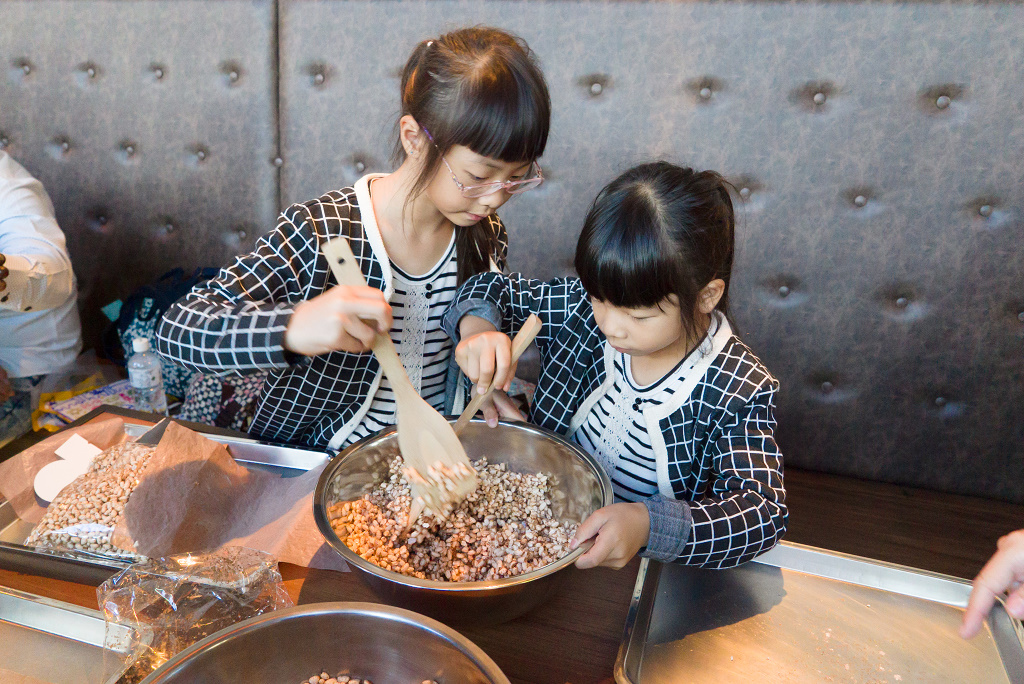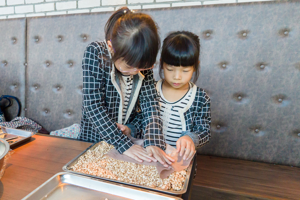 #27 現場有示範爆米香給小朋友看,但其實每個小朋友桌上早就擺了一盤爆米香,要不然現場爆的話,根本來不及供應給每個人~