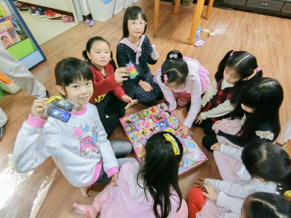 這一天家裡好熱鬧,因為林家姊姊第一次以小主人身份邀約一、二年級時結交的好朋友到家裡玩,我家園長開心的配合,前一天就烤了一盤瑪德蓮蛋糕和一大盒曲奇餅準備招待小客人。