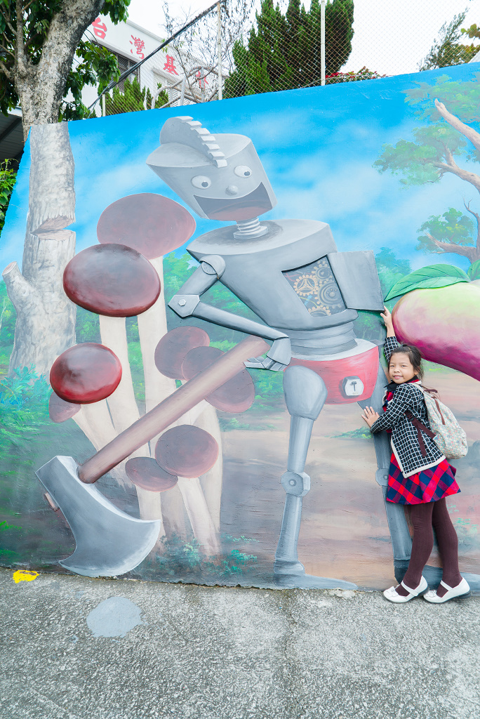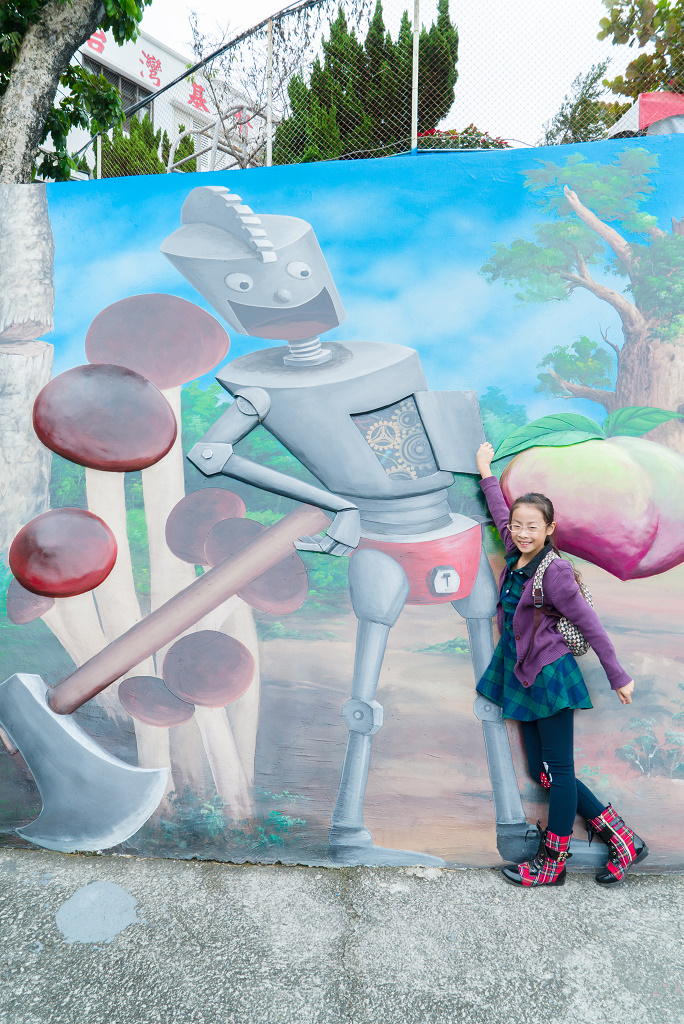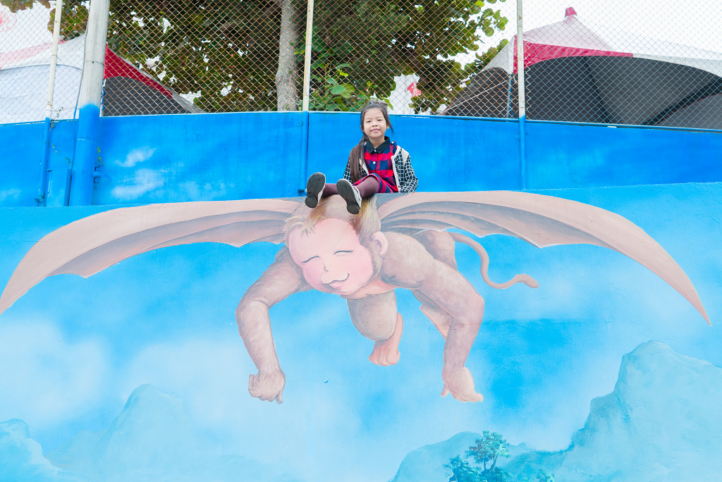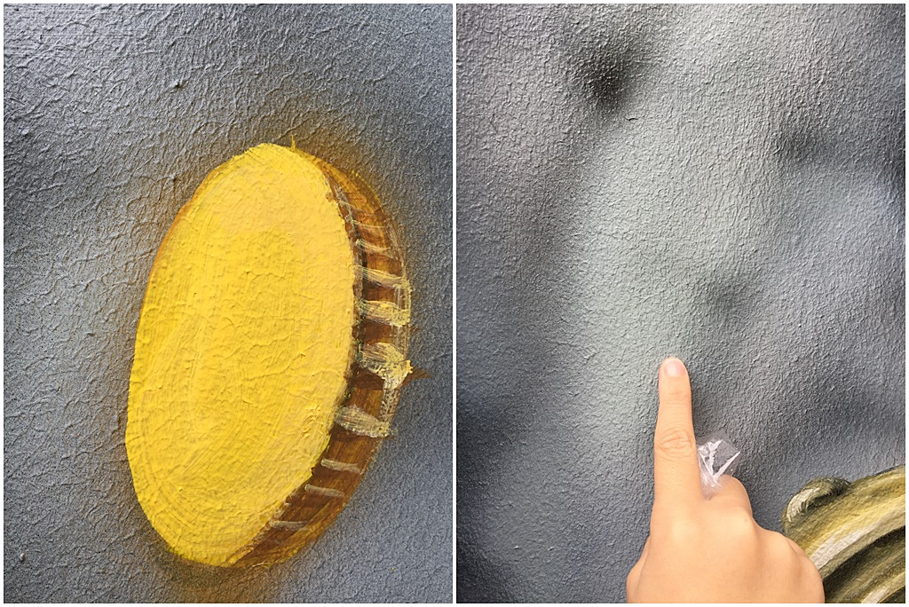 #57 經過曾老師的現場解說,我們才知道這些3D彩繪「內容」很不簡單,裡頭居然還有玻璃纖維等十層結構,畫好之後再上二層保護膜,所以說一幅彩繪一共有多達12層結構,除了可以保護作品,更可以保持不褪色,好厲害!
