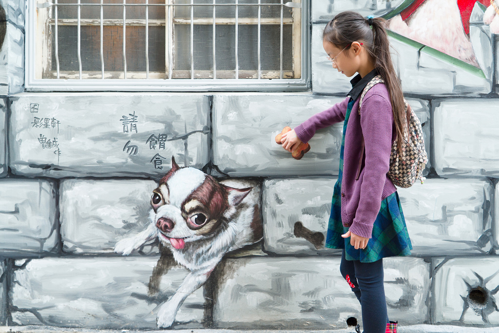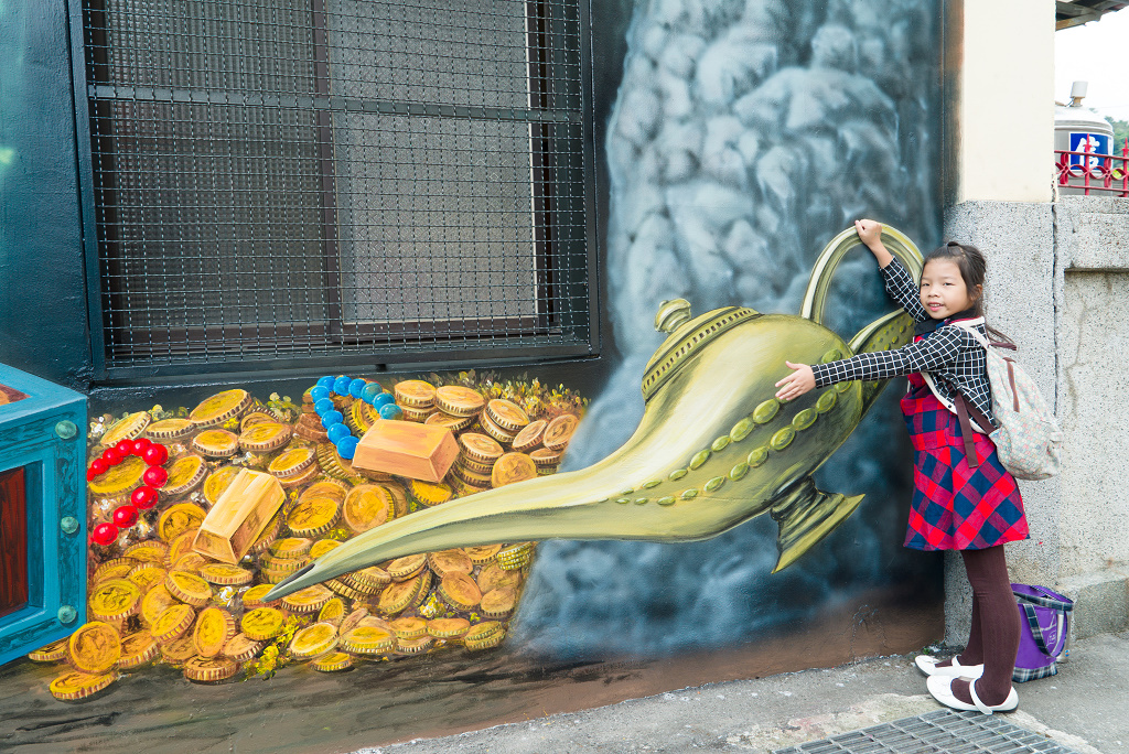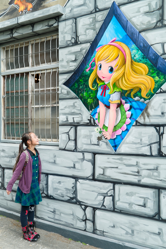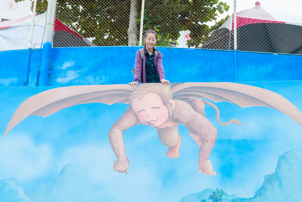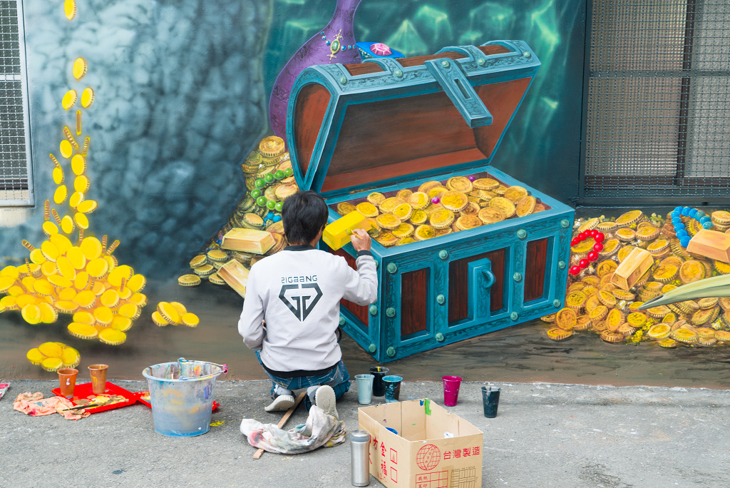 #57 經過曾老師的現場解說,我們才知道這些3D彩繪「內容」很不簡單,裡頭居然還有玻璃纖維等十層結構,畫好之後再上二層保護膜,所以說一幅彩繪一共有多達12層結構,除了可以保護作品,更可以保持不褪色,好厲害!