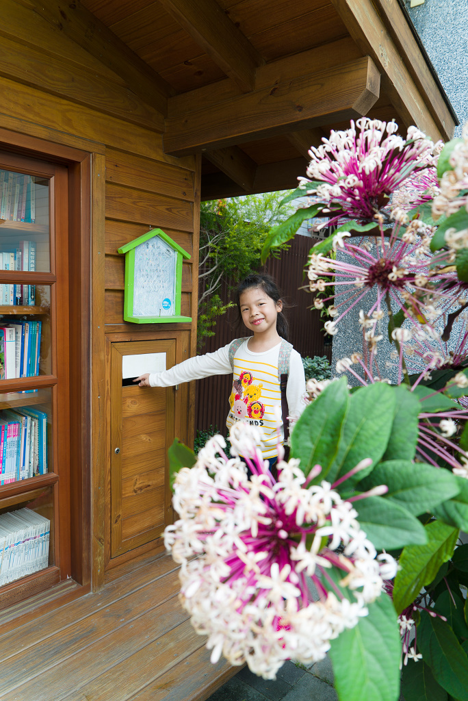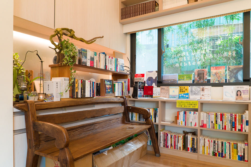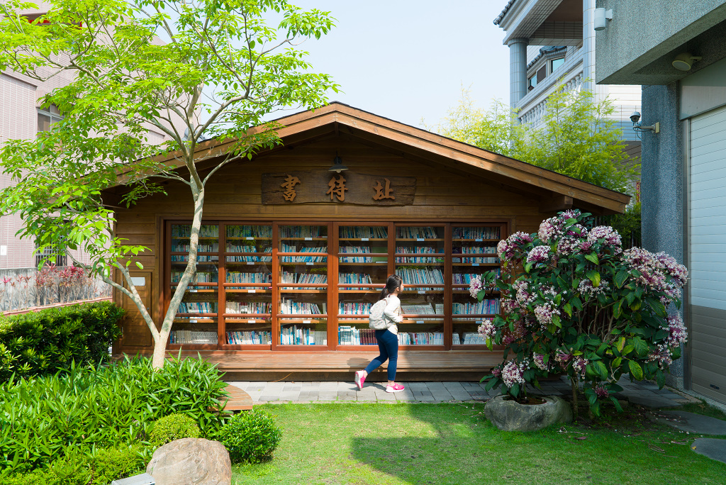 #18 為了方便社區居民與讀者借閱或歸還館藏書籍,在一樓戶外設立了庭園書屋,取名為「書待址」,大家都可以自在的取閱藏書。