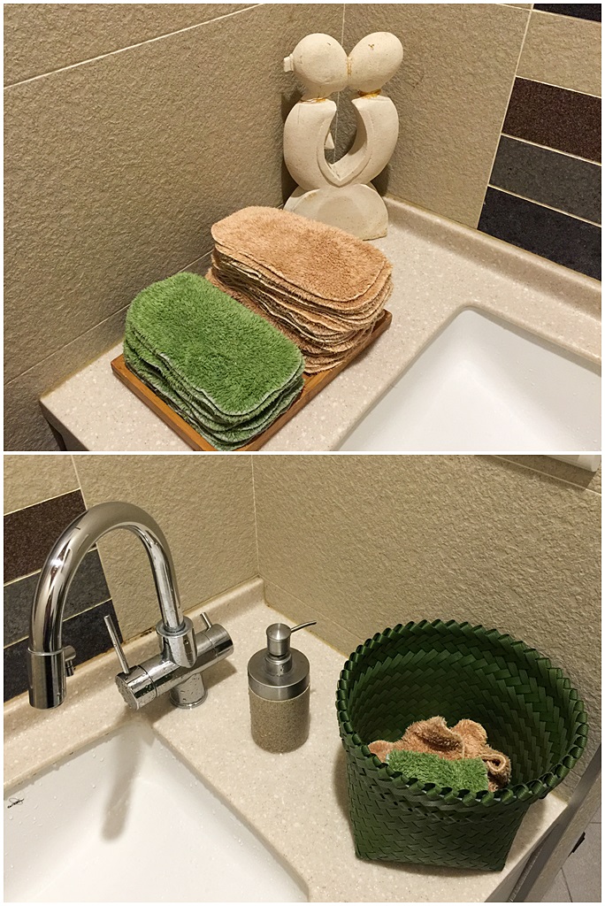#55 特別提一下,店內提倡環保真的是很徹底,洗手間不提供擦手紙、烘手機,而是使用可清洗重複使用的擦手巾。