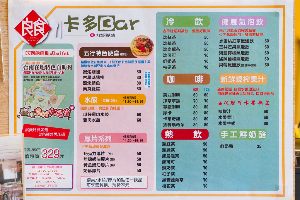 #68 這裡用餐分成兩種,一是吃到飽的自助餐,大人為329元,二是簡餐(便當)。
